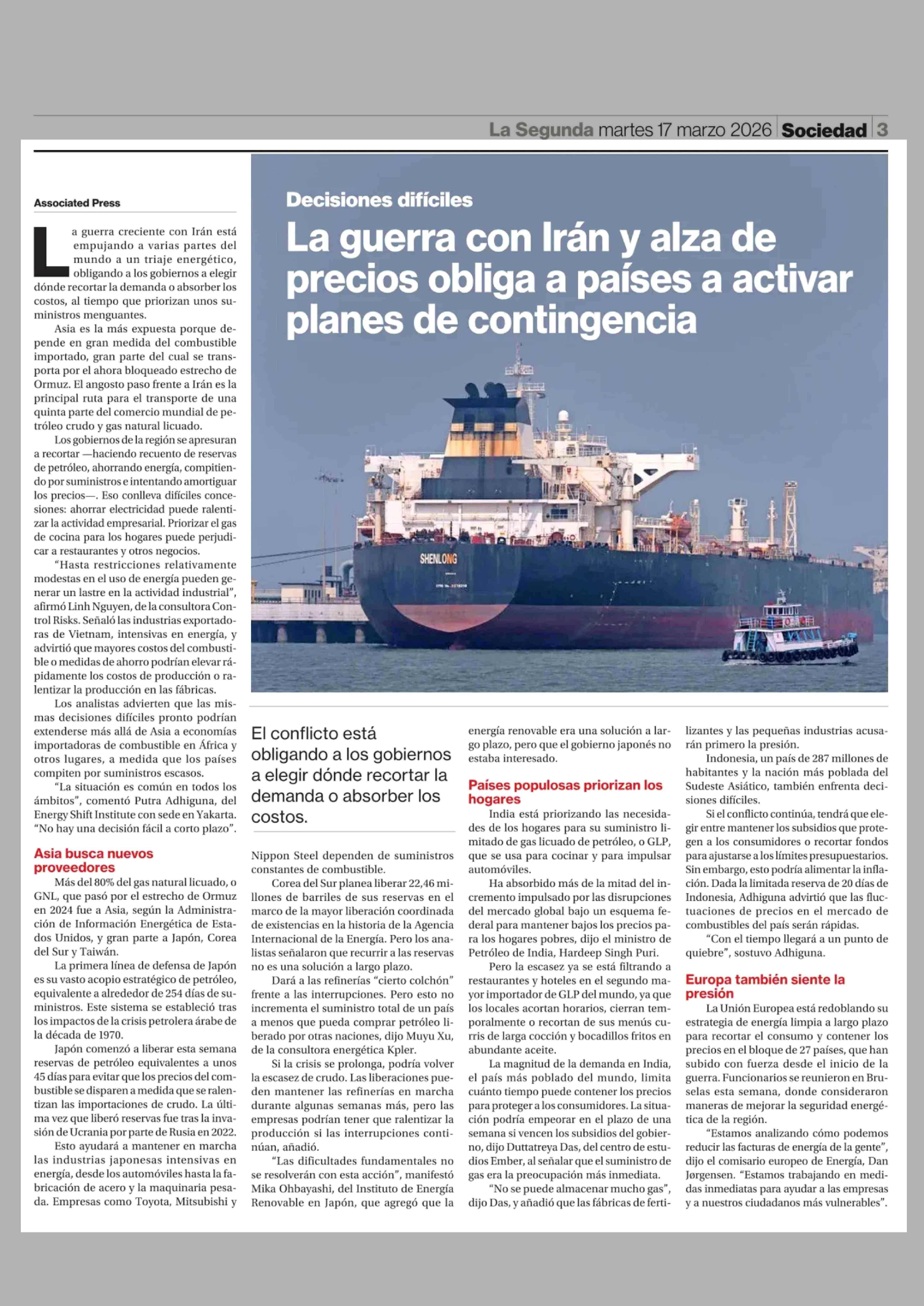 Título: La guerra con Irán y alza de precios obliga a países a activar planes de contingencia