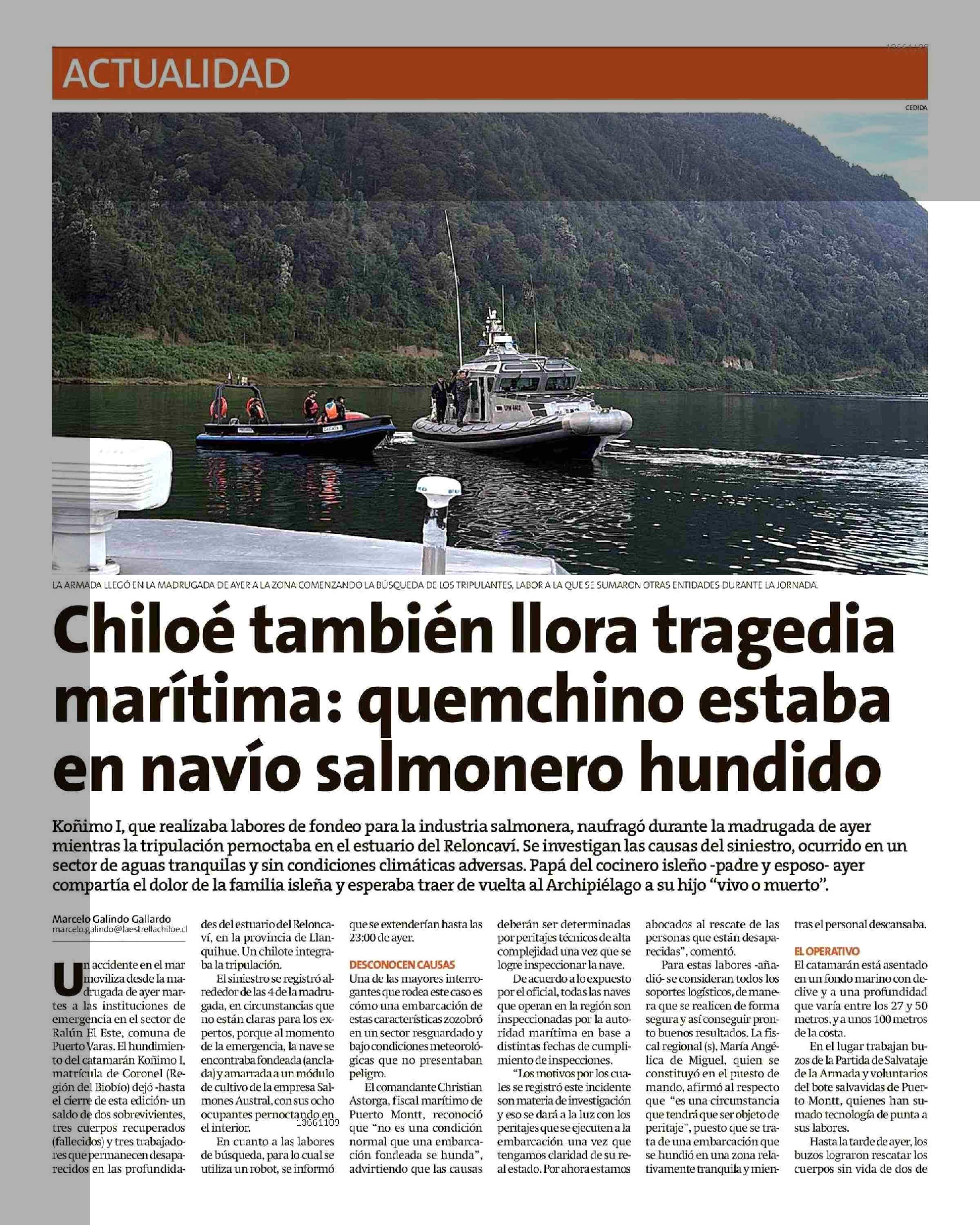 Título: Chiloé también llora tragedia marítima: quemchino estaba en navío salmonero hundido