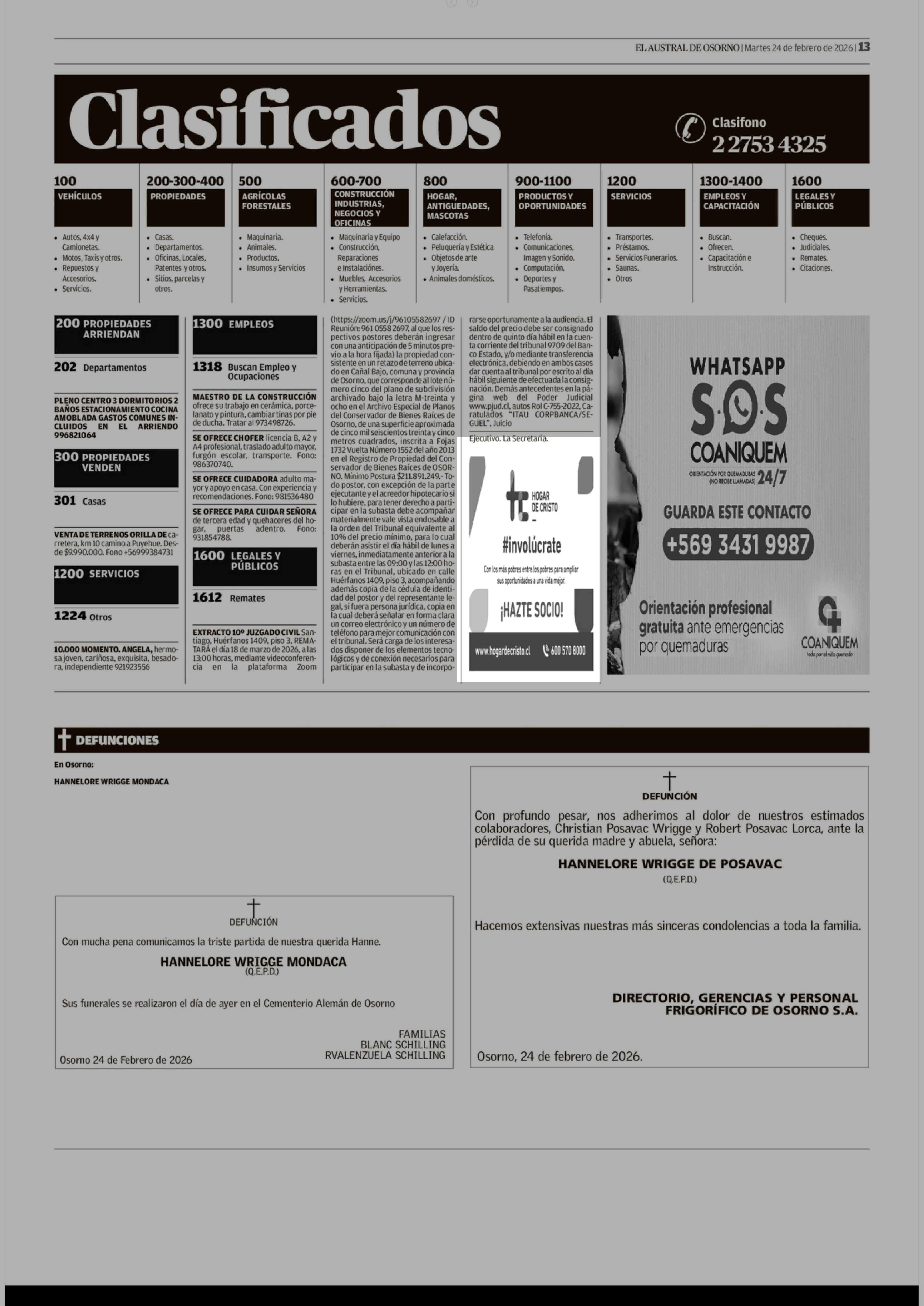 Aviso Ayuda Social: HOGAR DE CRISTO 24-02-2026 El Austral de Osorno |