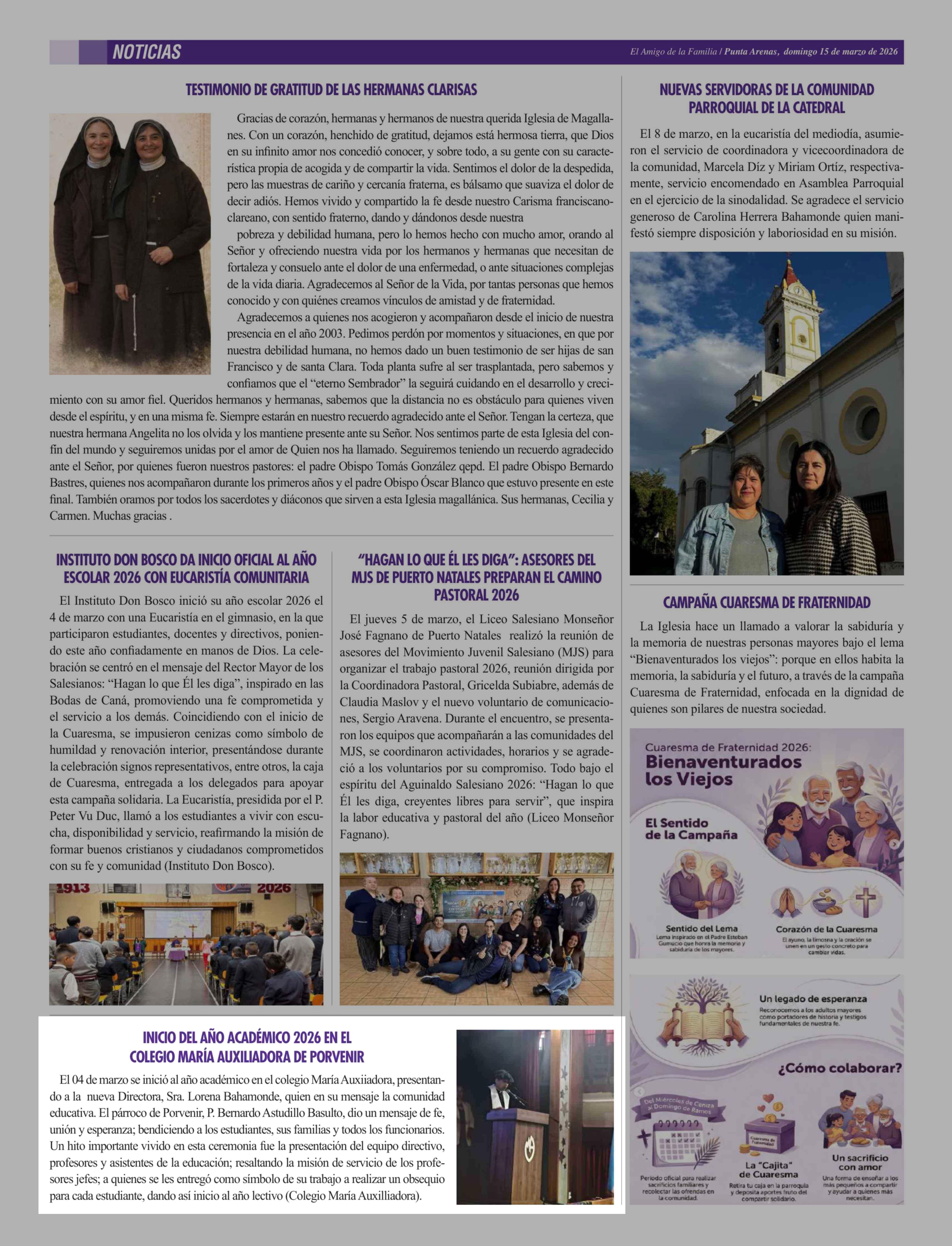 INICIO DEL AÑO ACADÉMICO 2026 EN EL COLEGIO MARÍA AUXILIADORA DE PORVENIR 15-03-2026 El Pingüino |