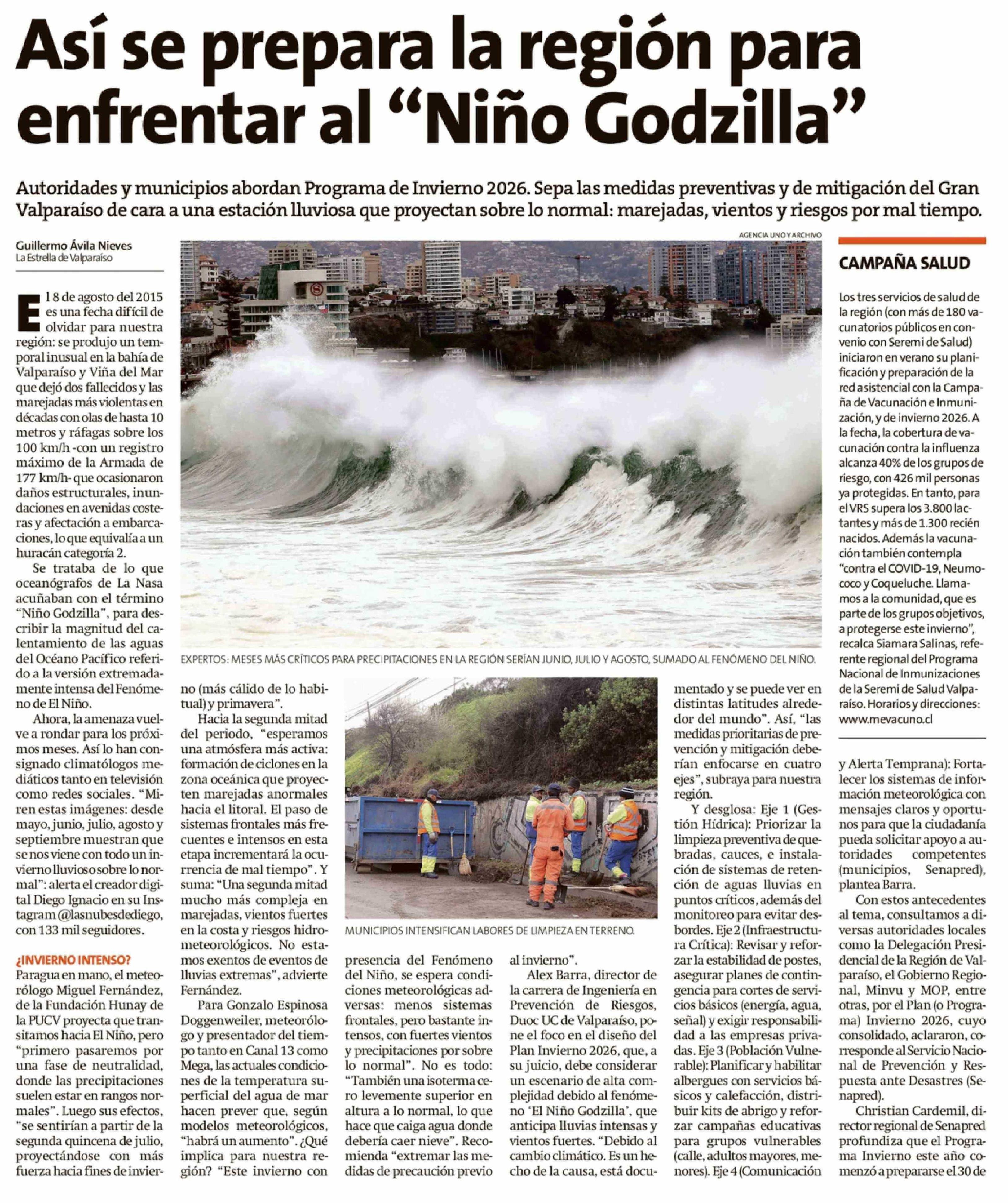 Así se prepara la región para enfrentar al "Niño Godzilla" 13-04-2026 La Estrella de Valparaíso |