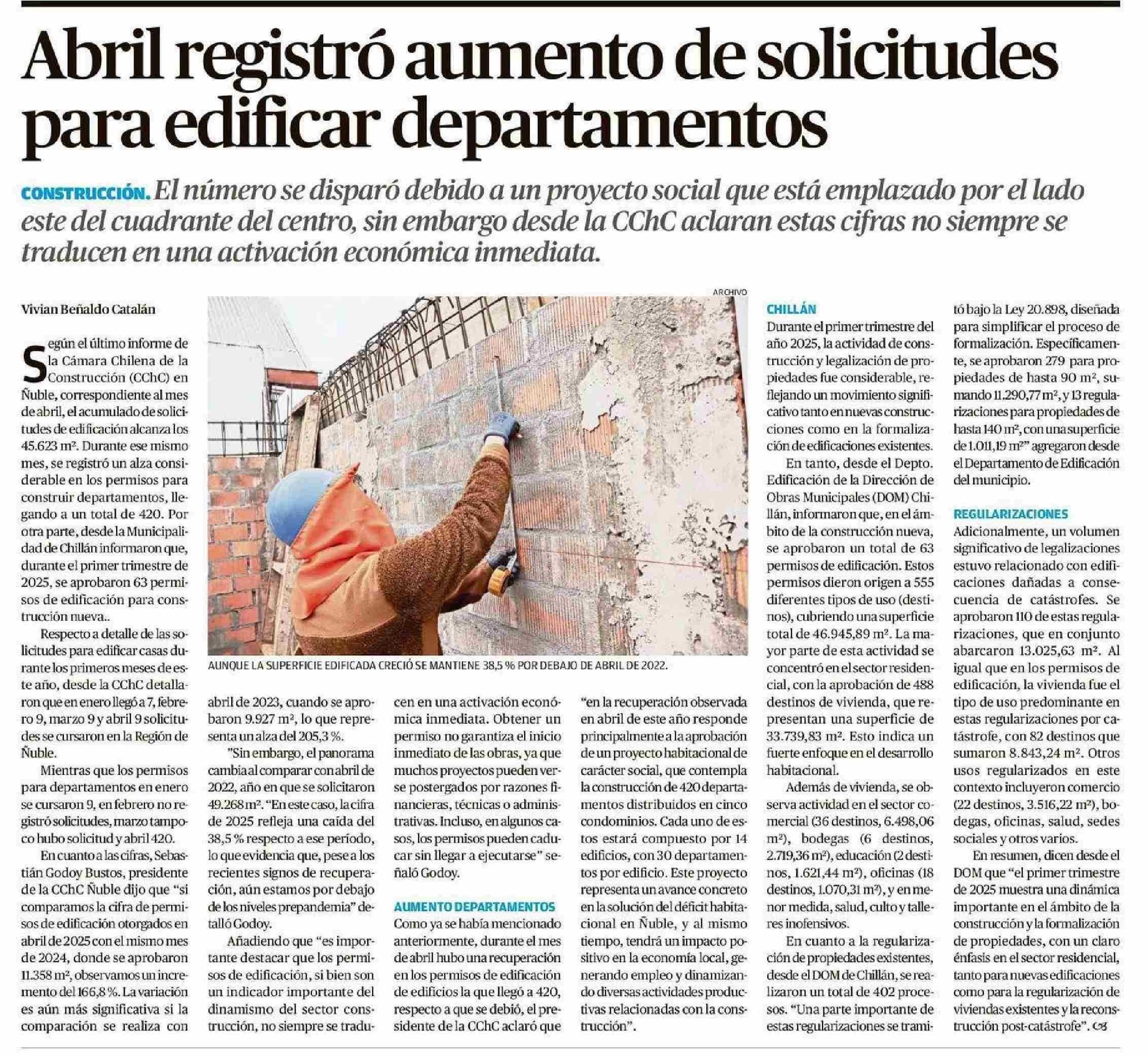 Abril registró aumento de solicitudes para edificar departamentos 17-06-2025 Crónica de Chillán |