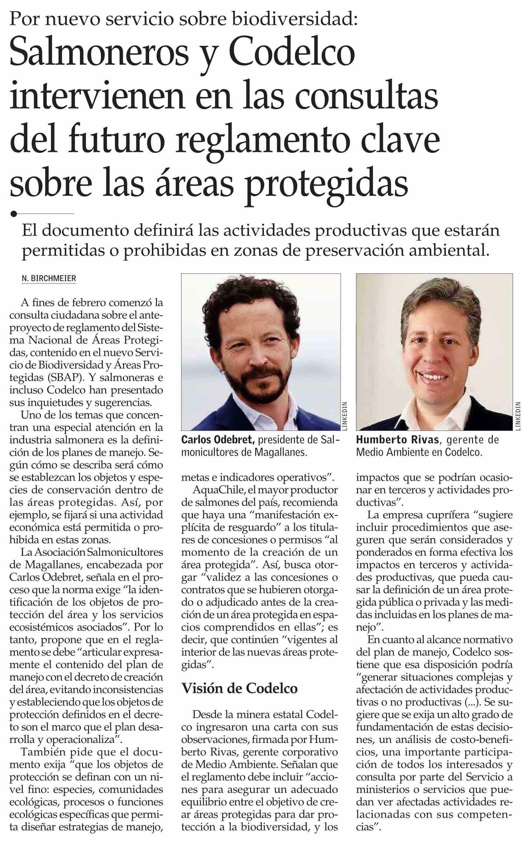 Título: Salmoneros y Codelco intervienen en las consultas del futuro reglamento clave sobre las áreas protegidas