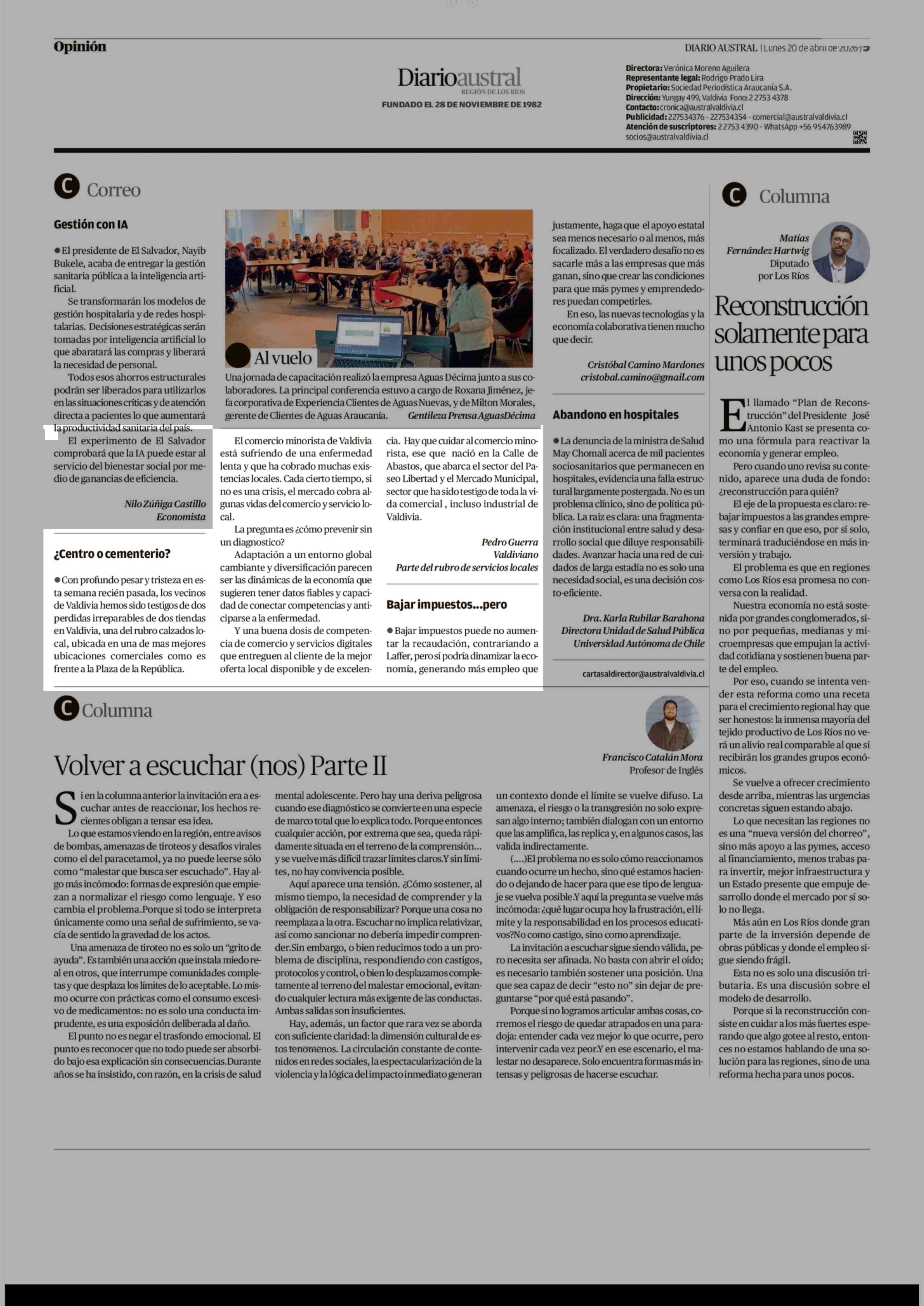 CARTAS: ¿Centro o cementerio? 20-04-2026 Diario Austral Región de Los Ríos |