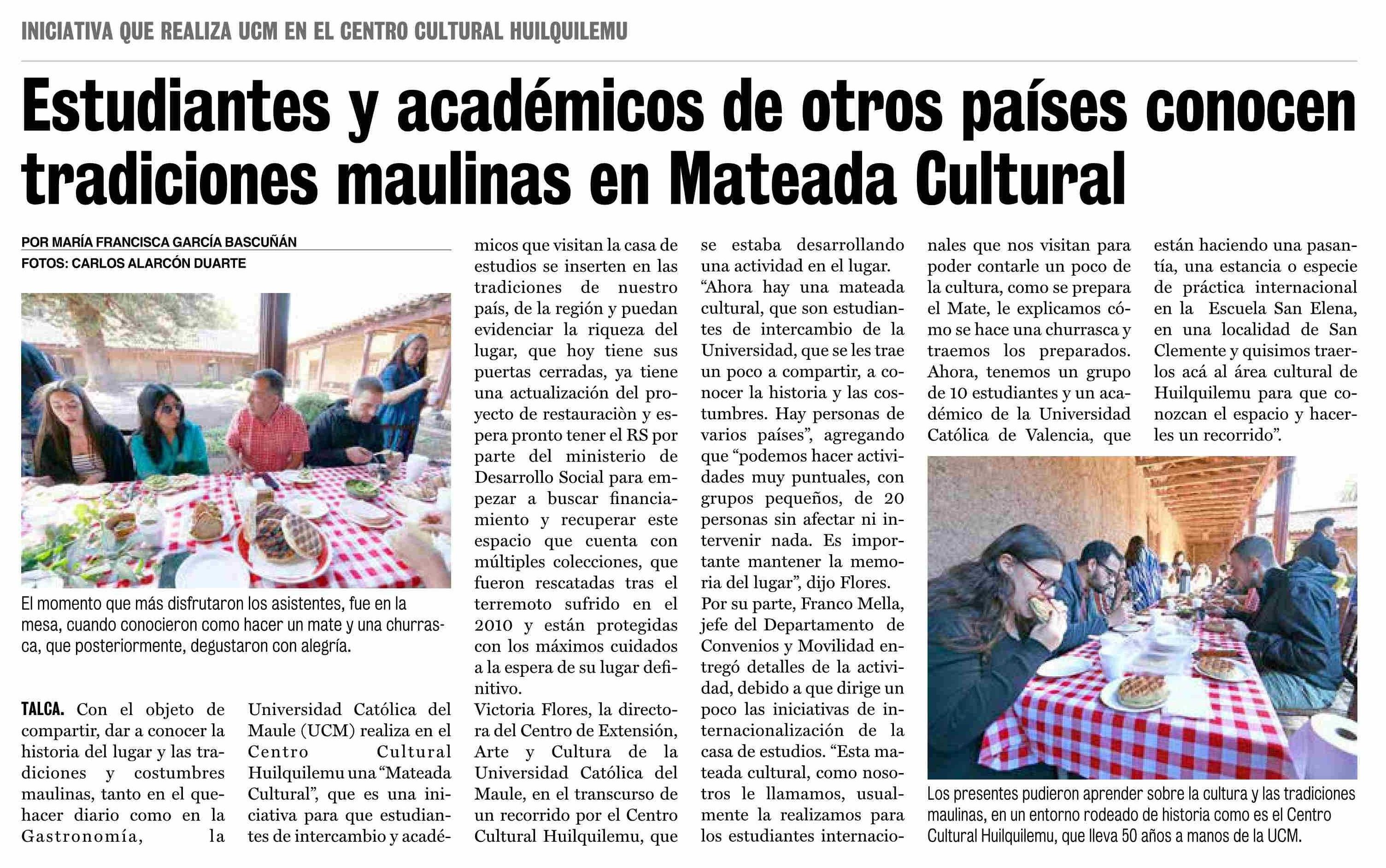 | Título: | Estudiantes y académicos de otros países conocen tradiciones maulinas en Mateada Cultural |