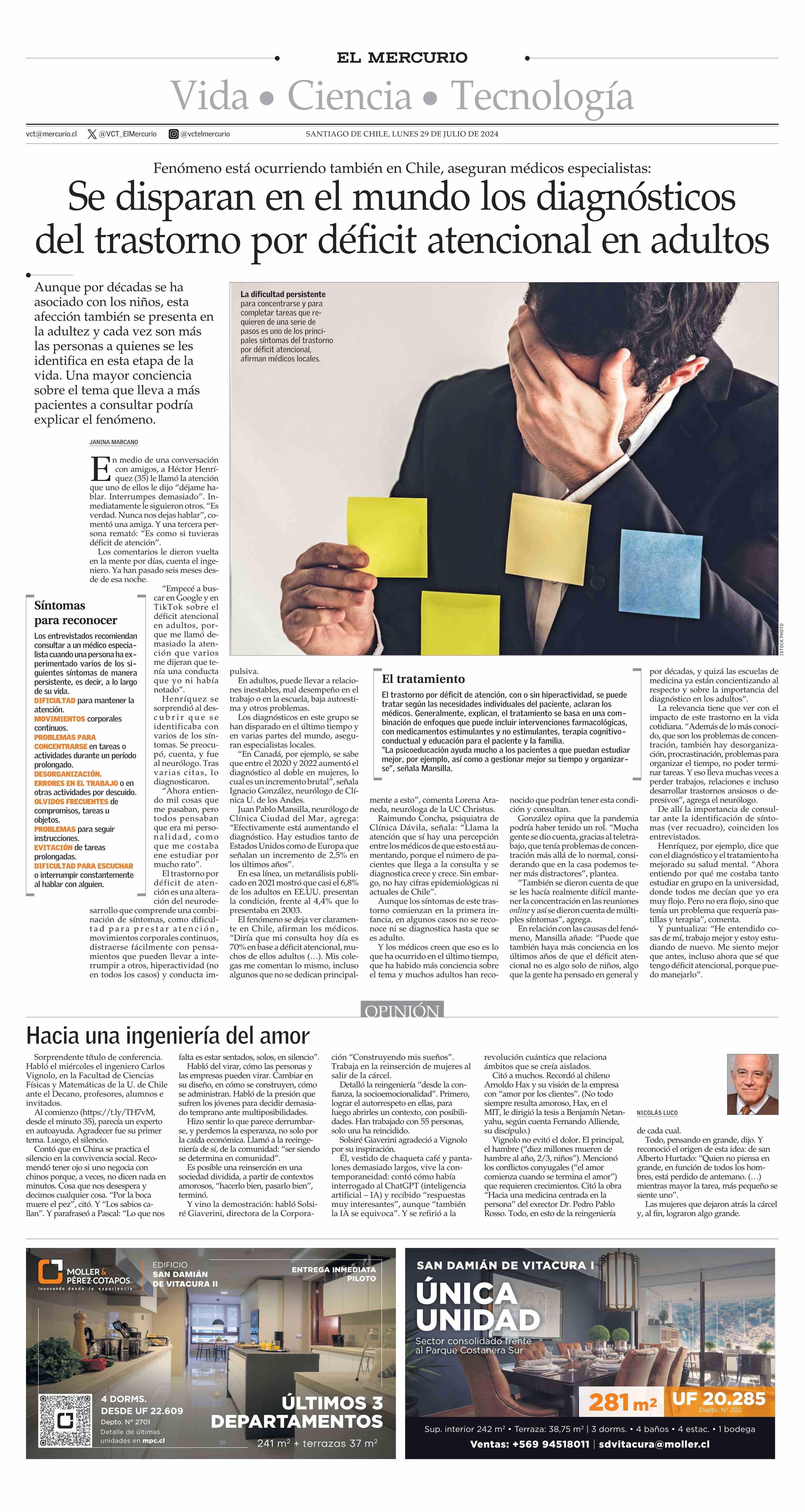 Se disparan en el mundo los diagnósticos del trastorno por déficit atencional en adultos 29-07-2024 El Mercurio |