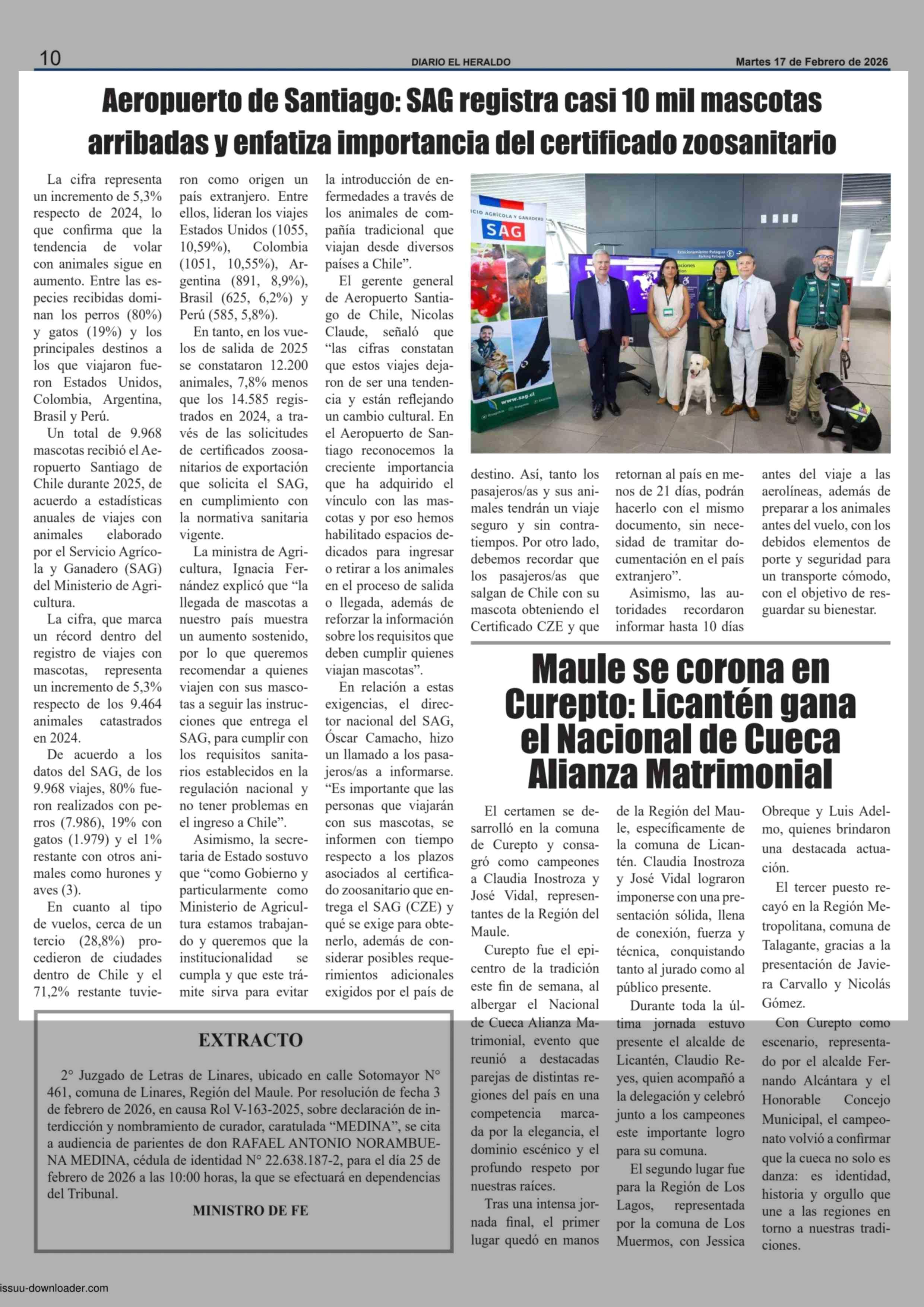 Aeropuerto de Santiago: SAG registra casi 10 mil mascotas arribadas y enfatiza importancia del certificado zoosanitario 17-02-2026 El Heraldo |