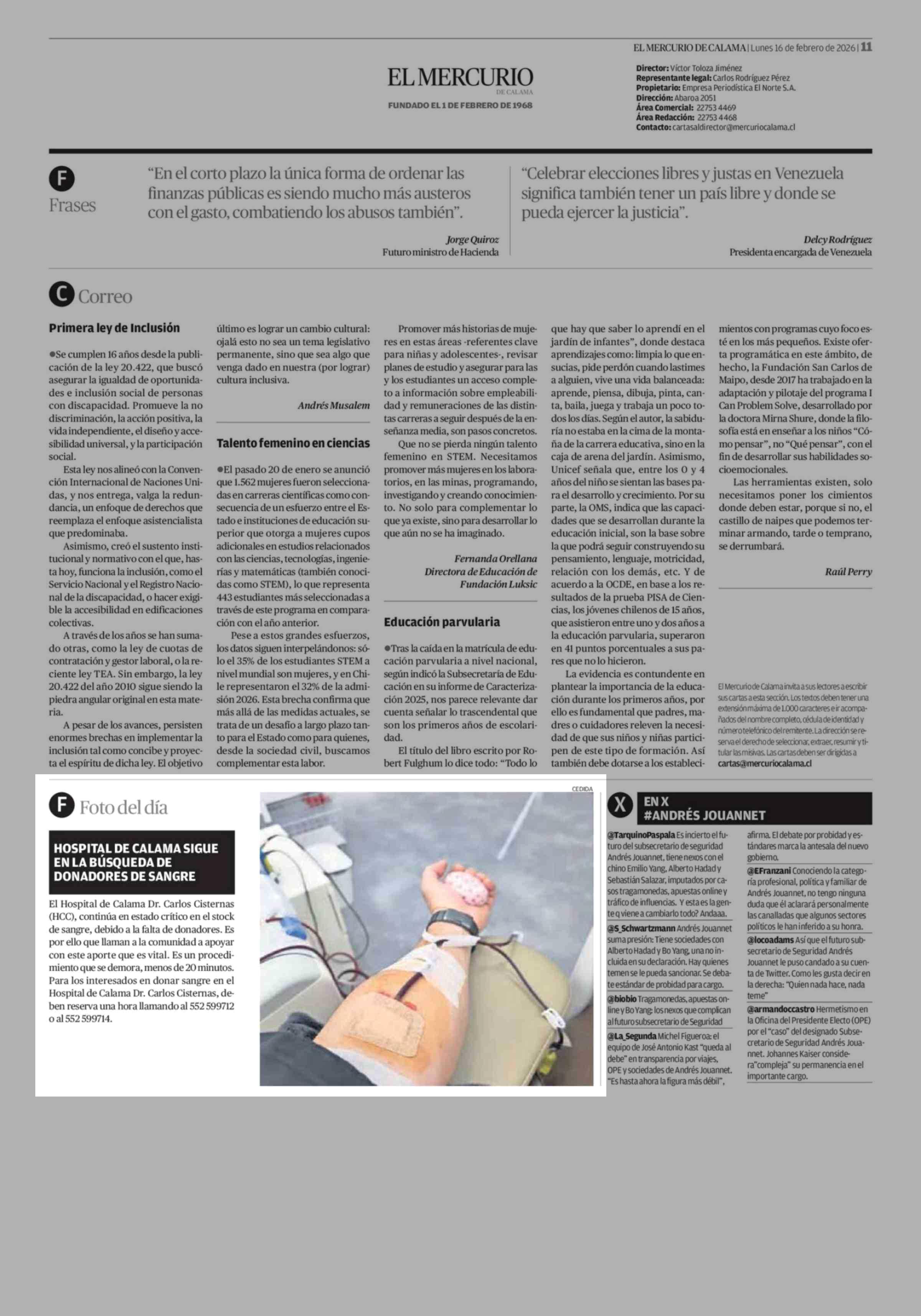 Fecha: 16-02-2026 Sector: Noticia general Región: Región de Antofagasta