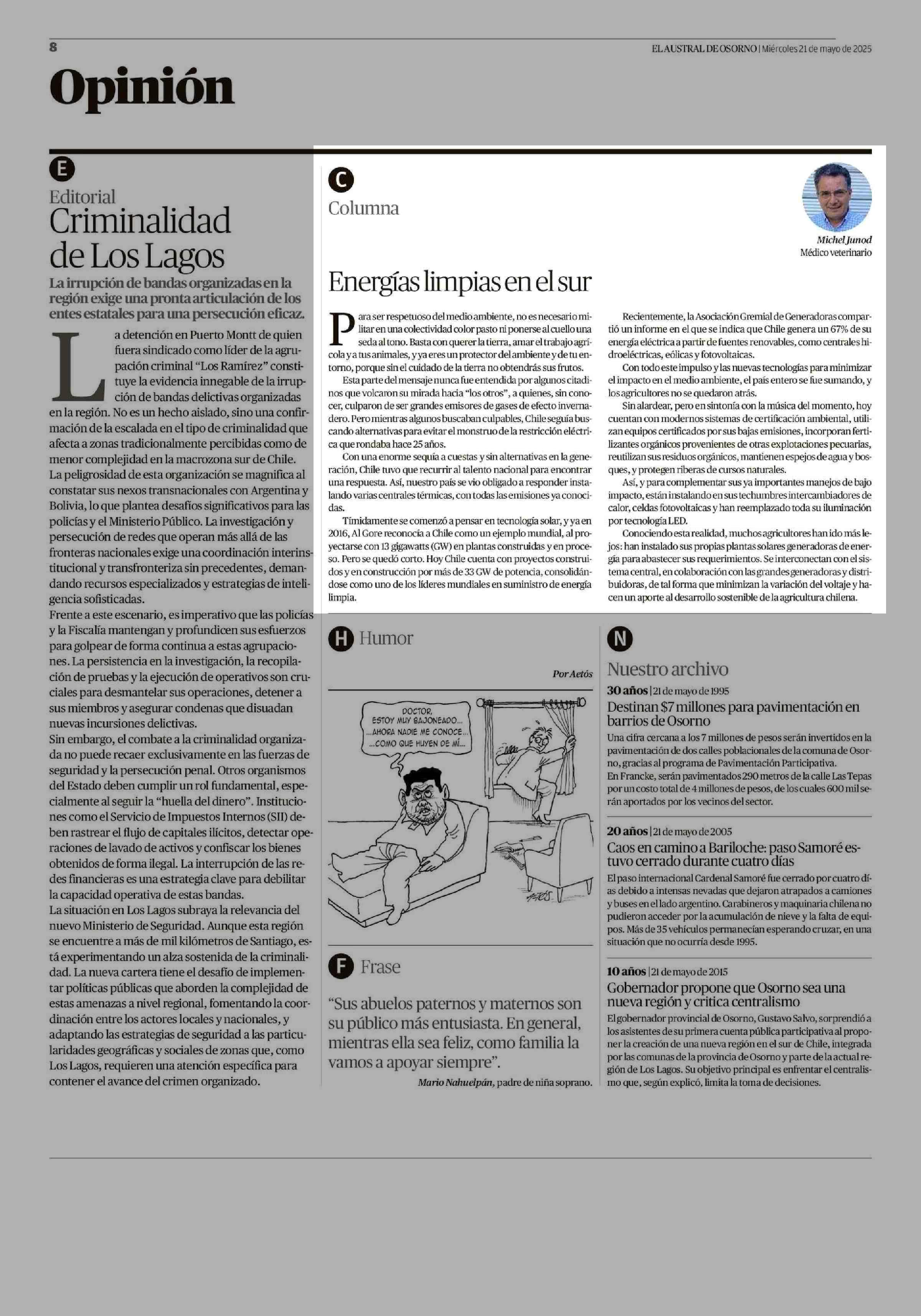 Energías limpias en el sur 21-05-2025 El Austral de Osorno |