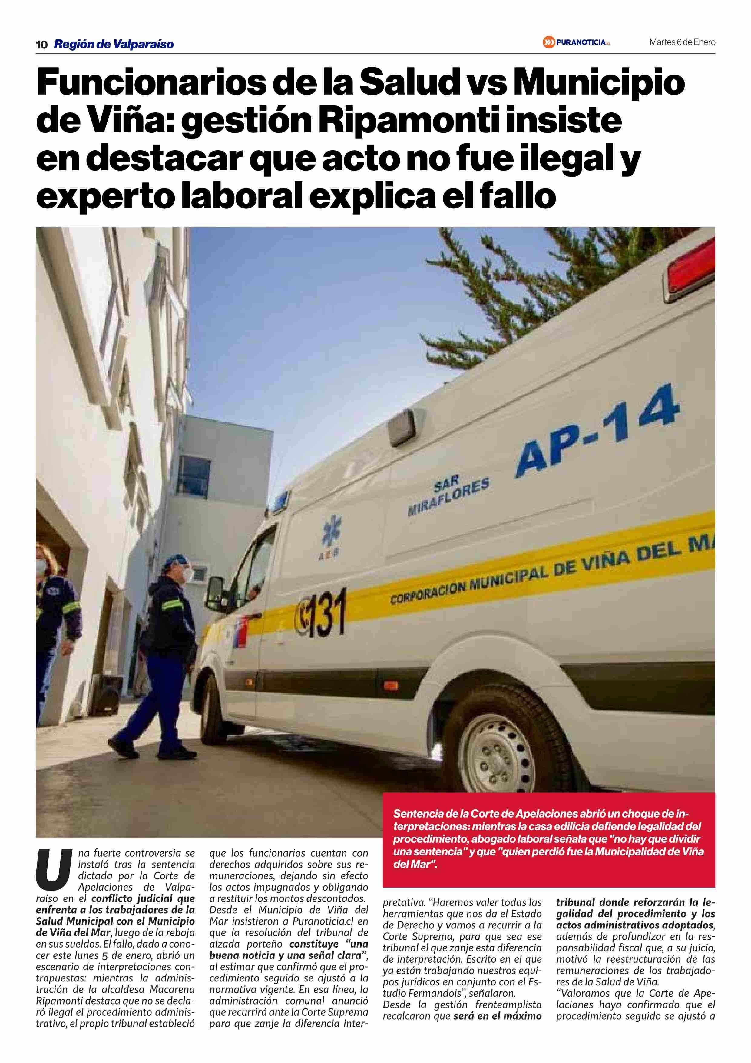 Funcionarios de la Salud vs Municipio de Viña: gestión Ripamonti insiste en destacar que acto no fue ilegal y experto laboral explica el fallo 06-01-2026 Puranoticia.cl |