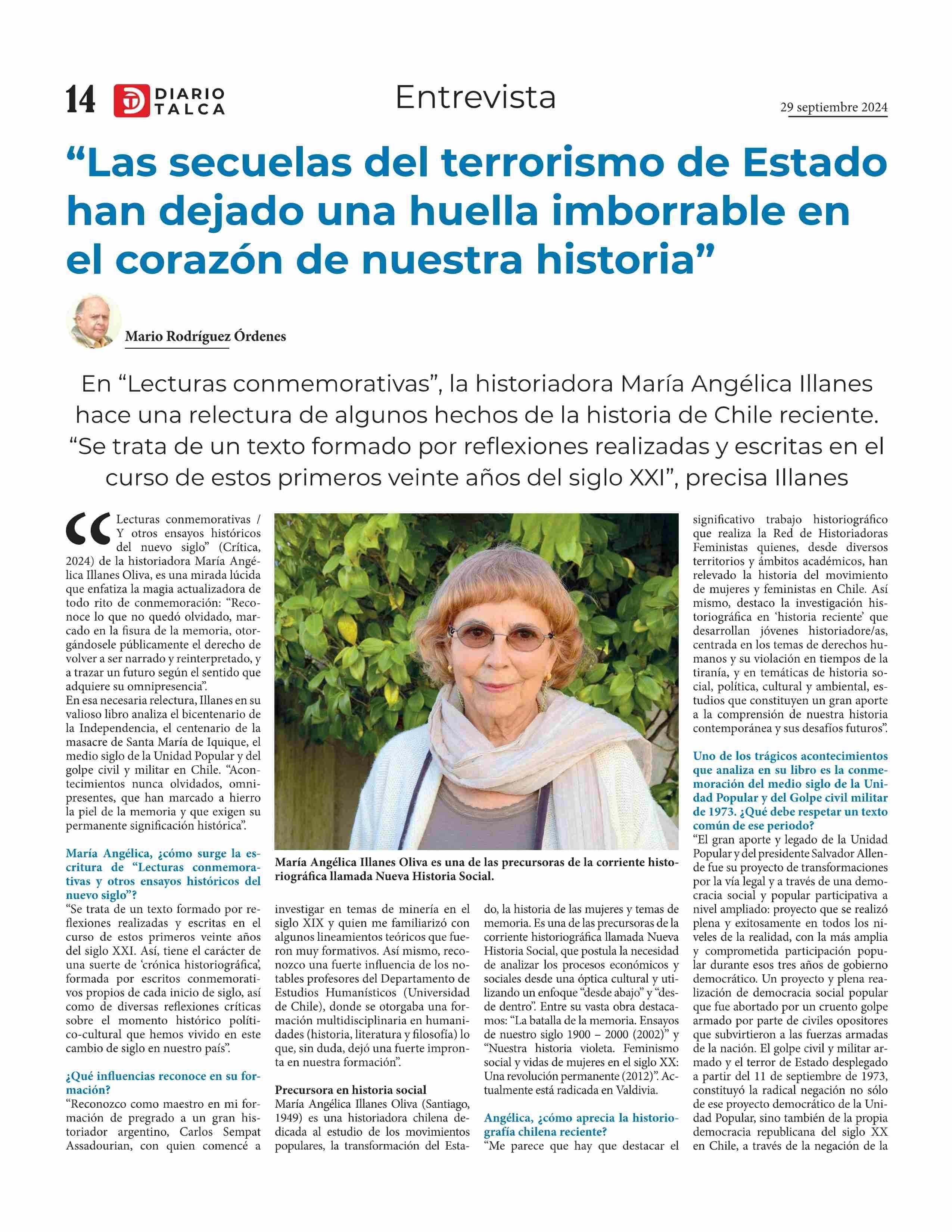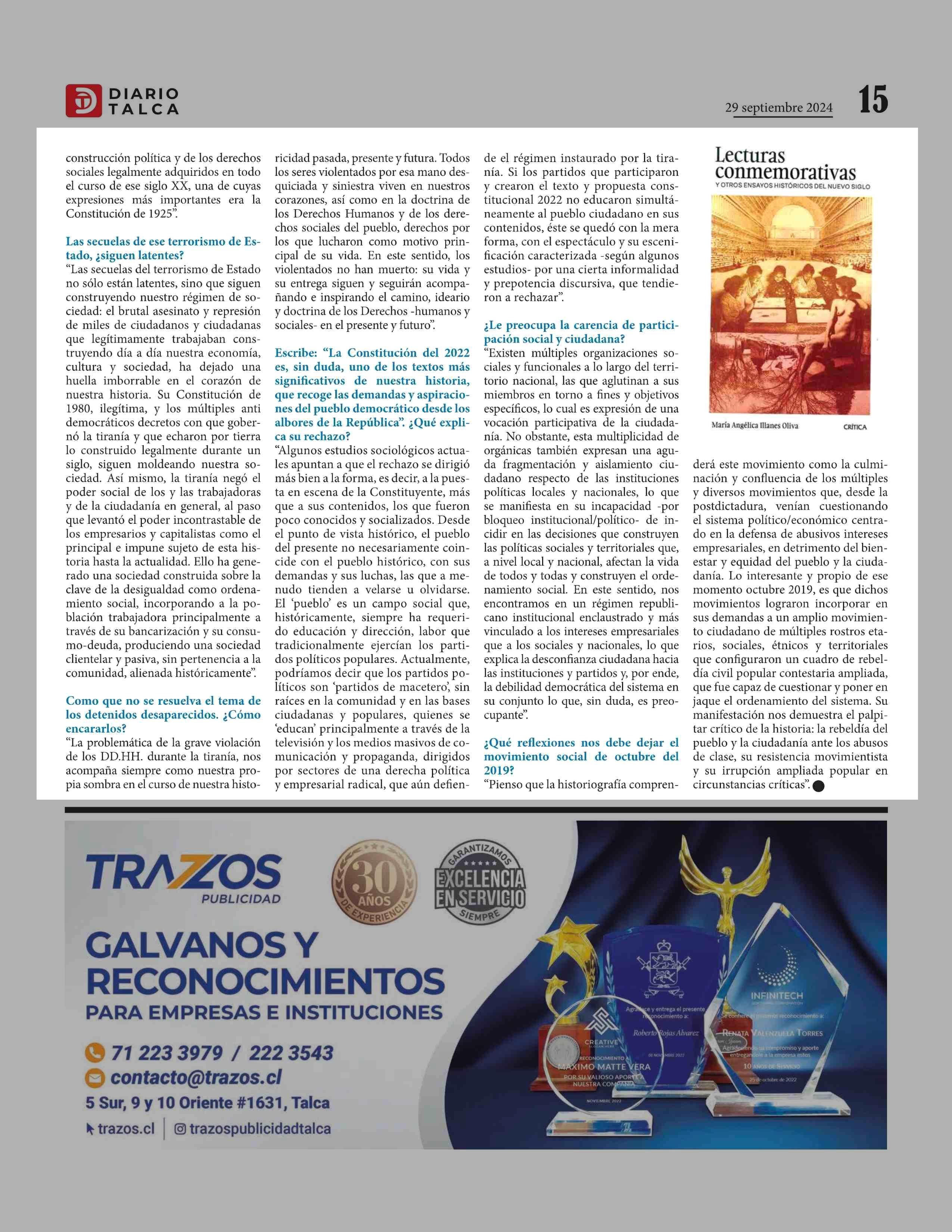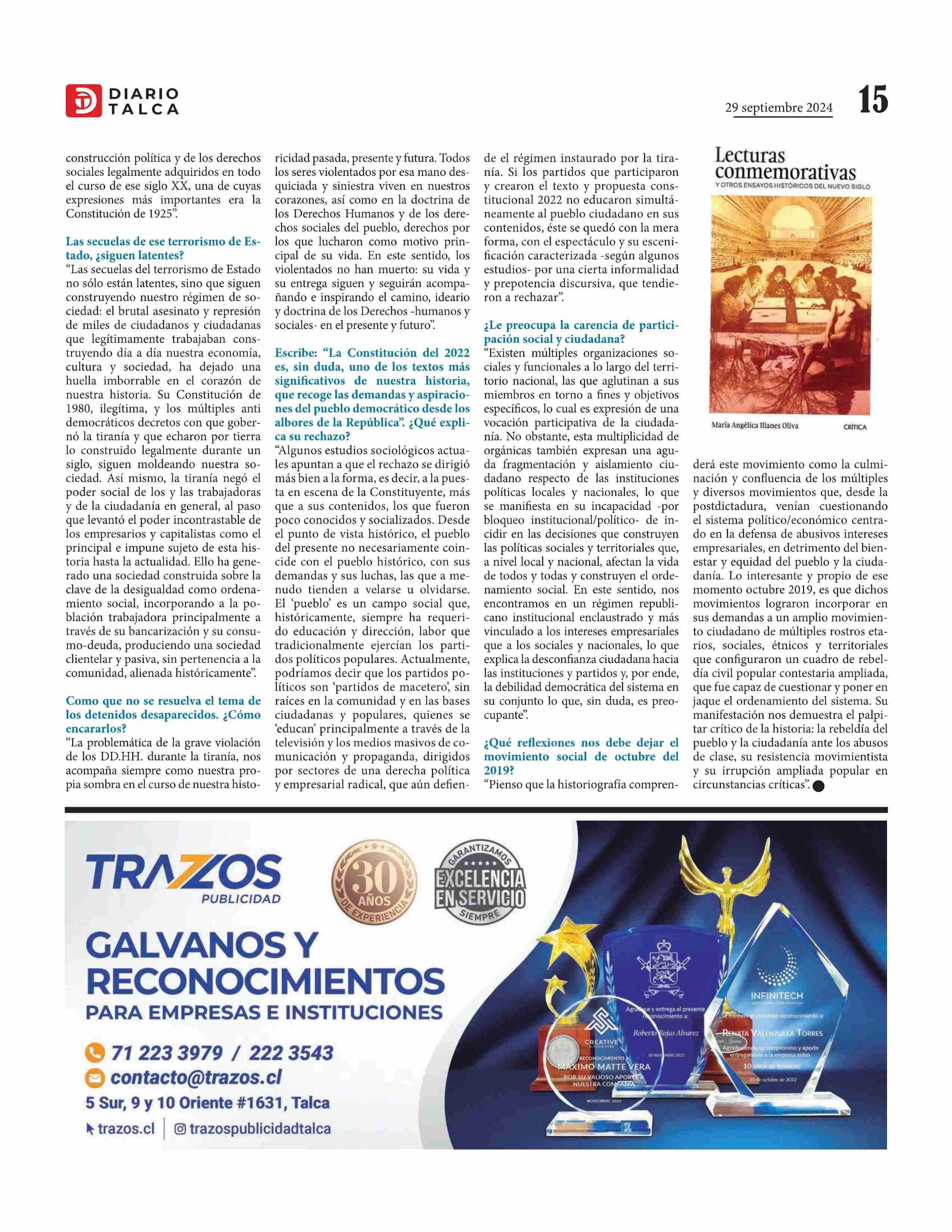 “Las secuelas del terrorismo de Estado han dejado una huella imborrable en el corazón de nuestra historia” 29-09-2024 Diario Talca |