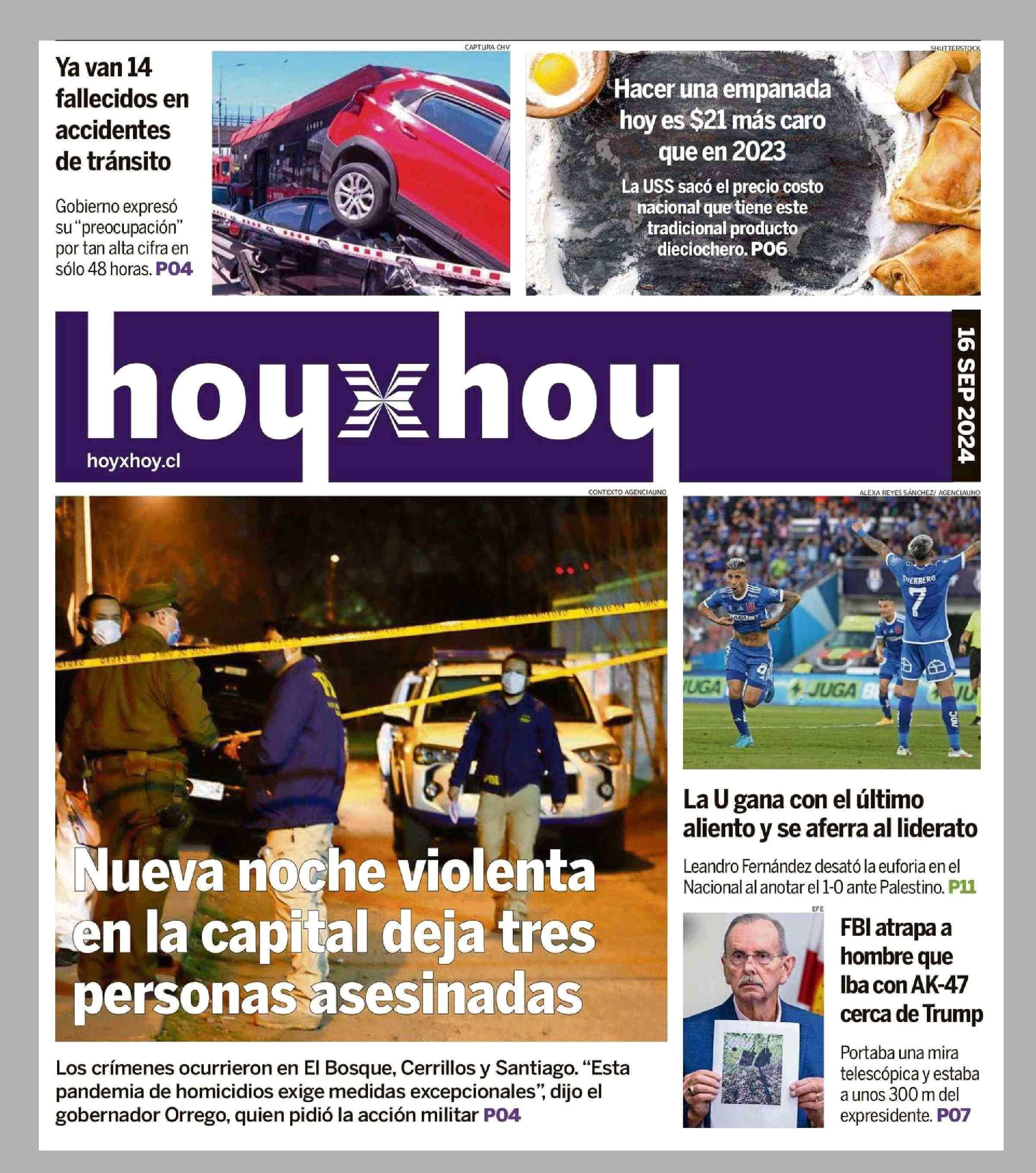 PORTADA HOYXHOY - CHILE 16-09-2024 Hoy x Hoy |