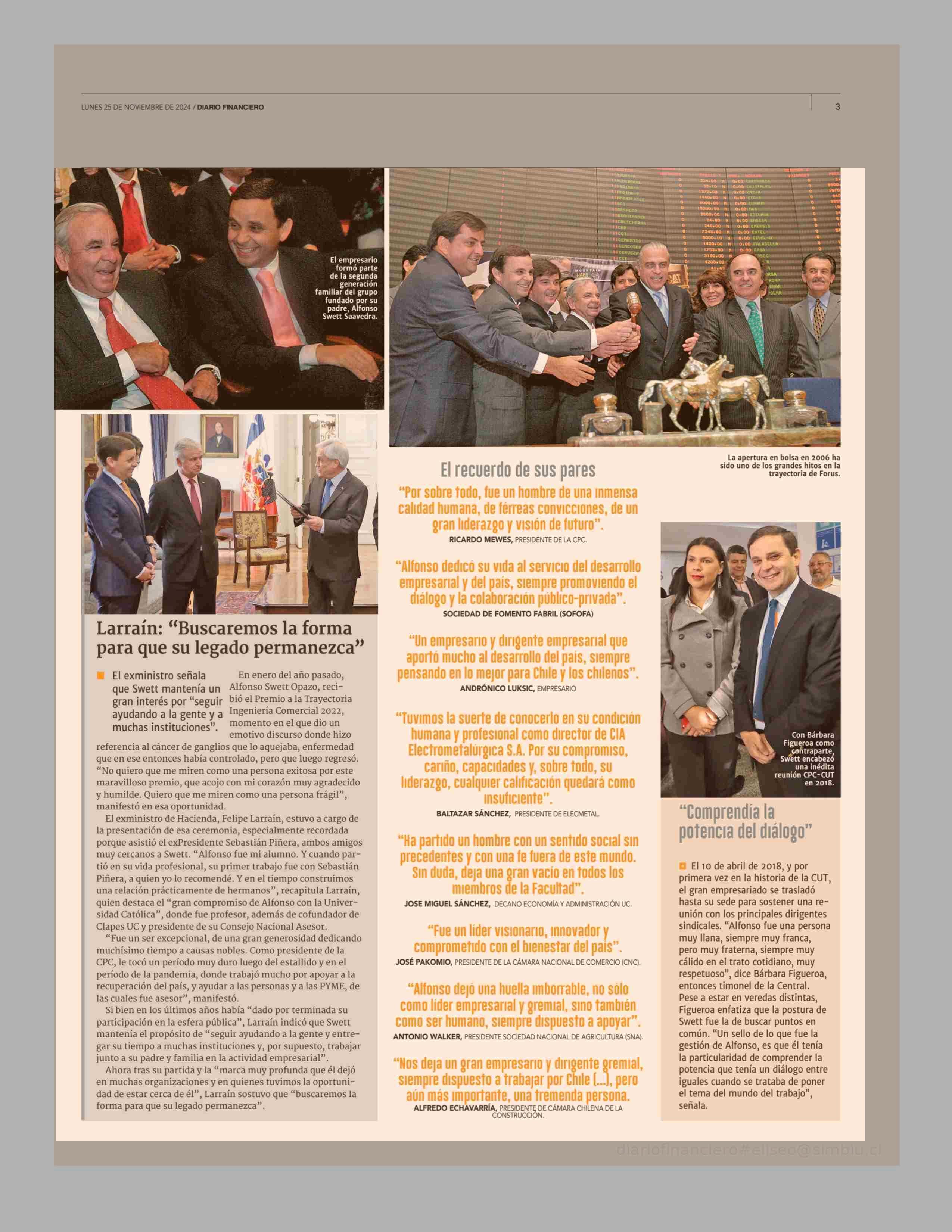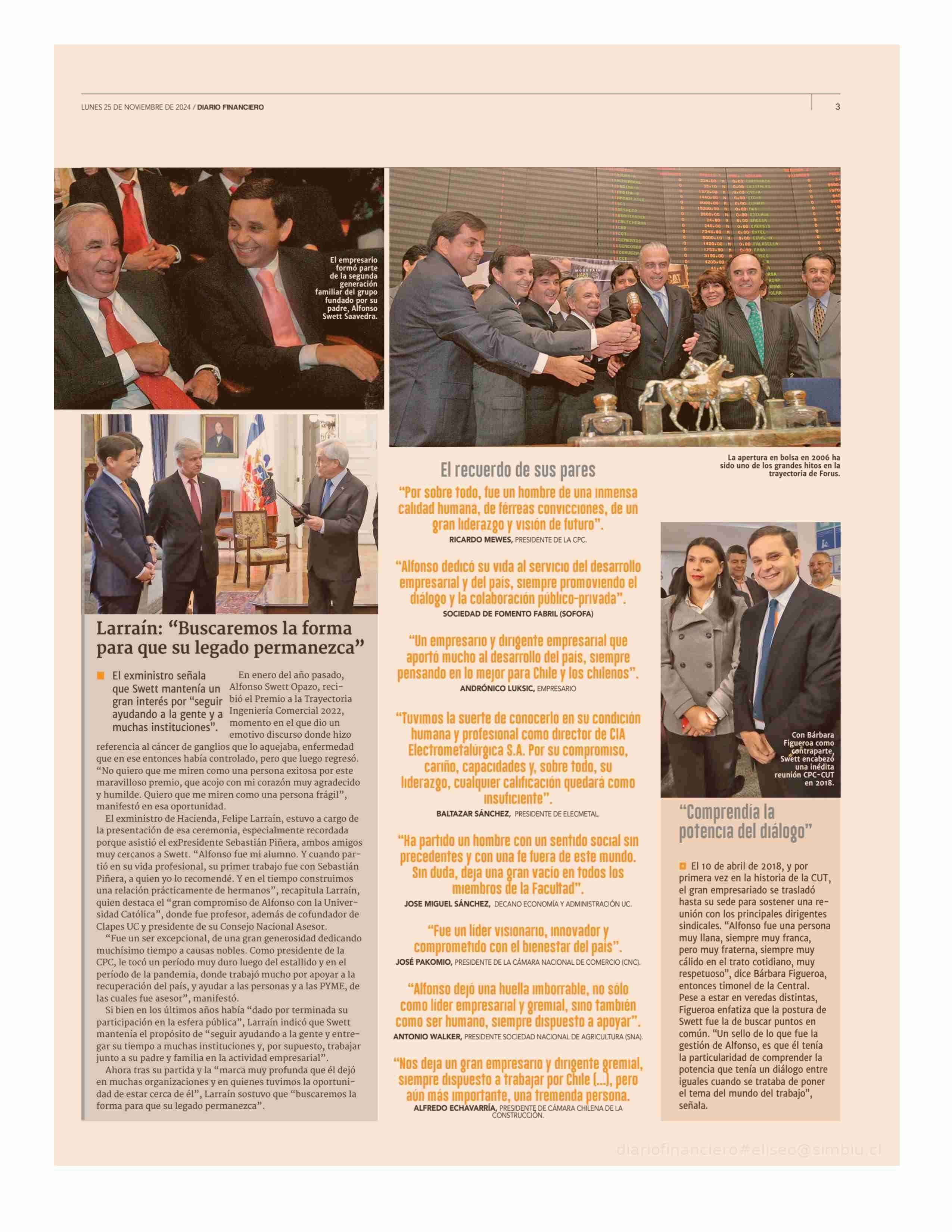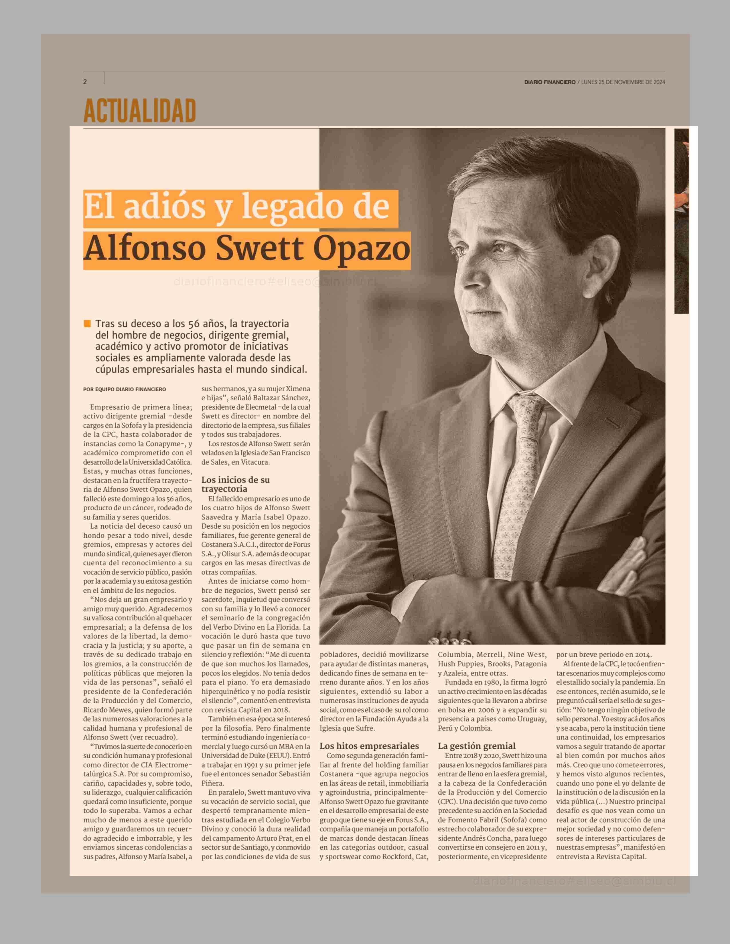 El adios y legado de Alfonso Swett Opazo 25-11-2024 Diario Financiero |