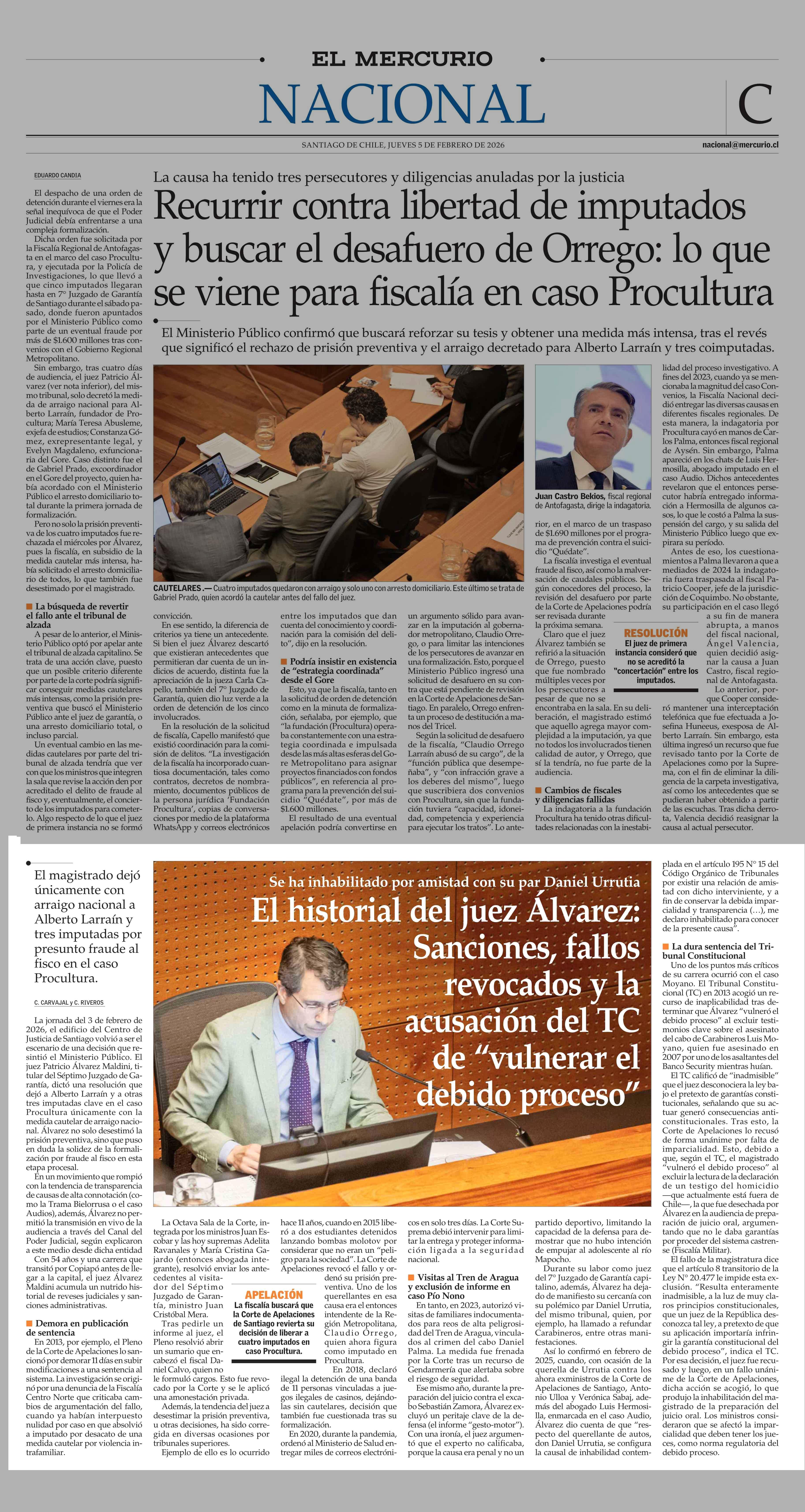 El historial del juez Álvarez: Sanciones, fallos revocados y la acusación del TC de “vulnerar el debido proceso” 05-02-2026 El Mercurio |