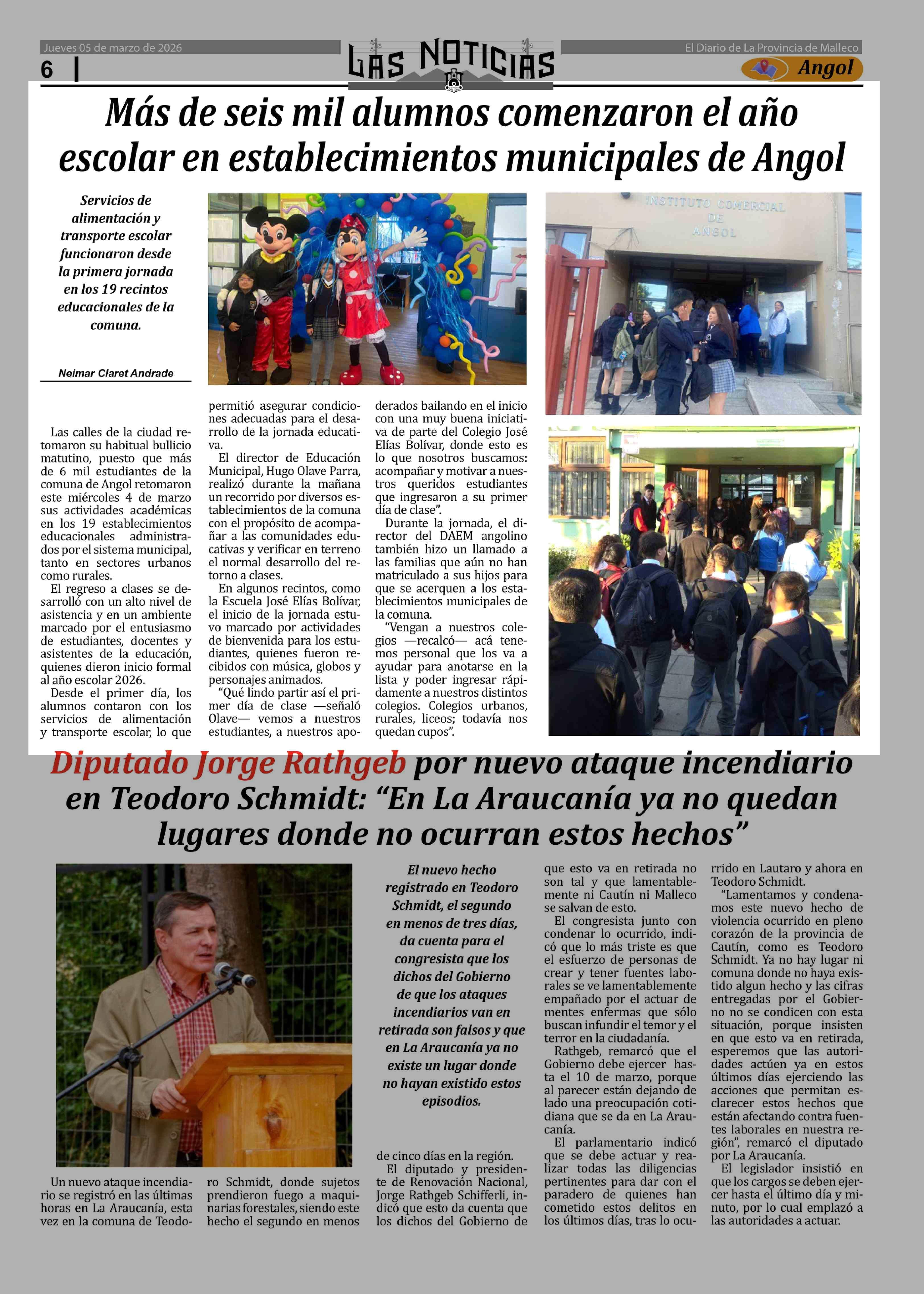 Más de seis mil alumnos comenzaron el año escolar en establecimientos municipales de Angol 05-03-2026 Las Noticias |
