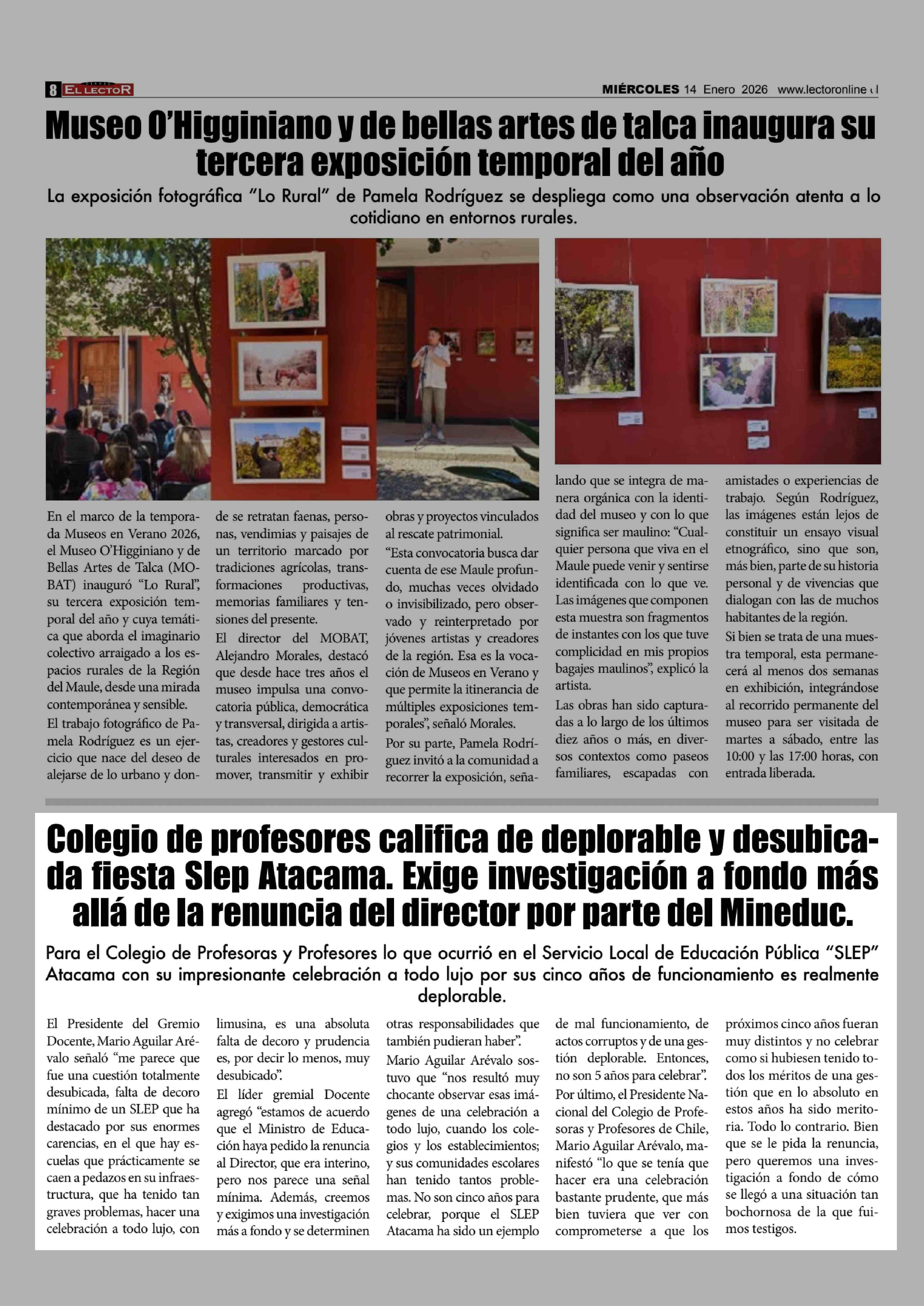 Colegio de profesores califica de deplorable y desubicada fiesta Slep Atacama. Exige investigación a fondo más allá de la renuncia del director por parte del Mineduc. 14-01-2026 El Lector |