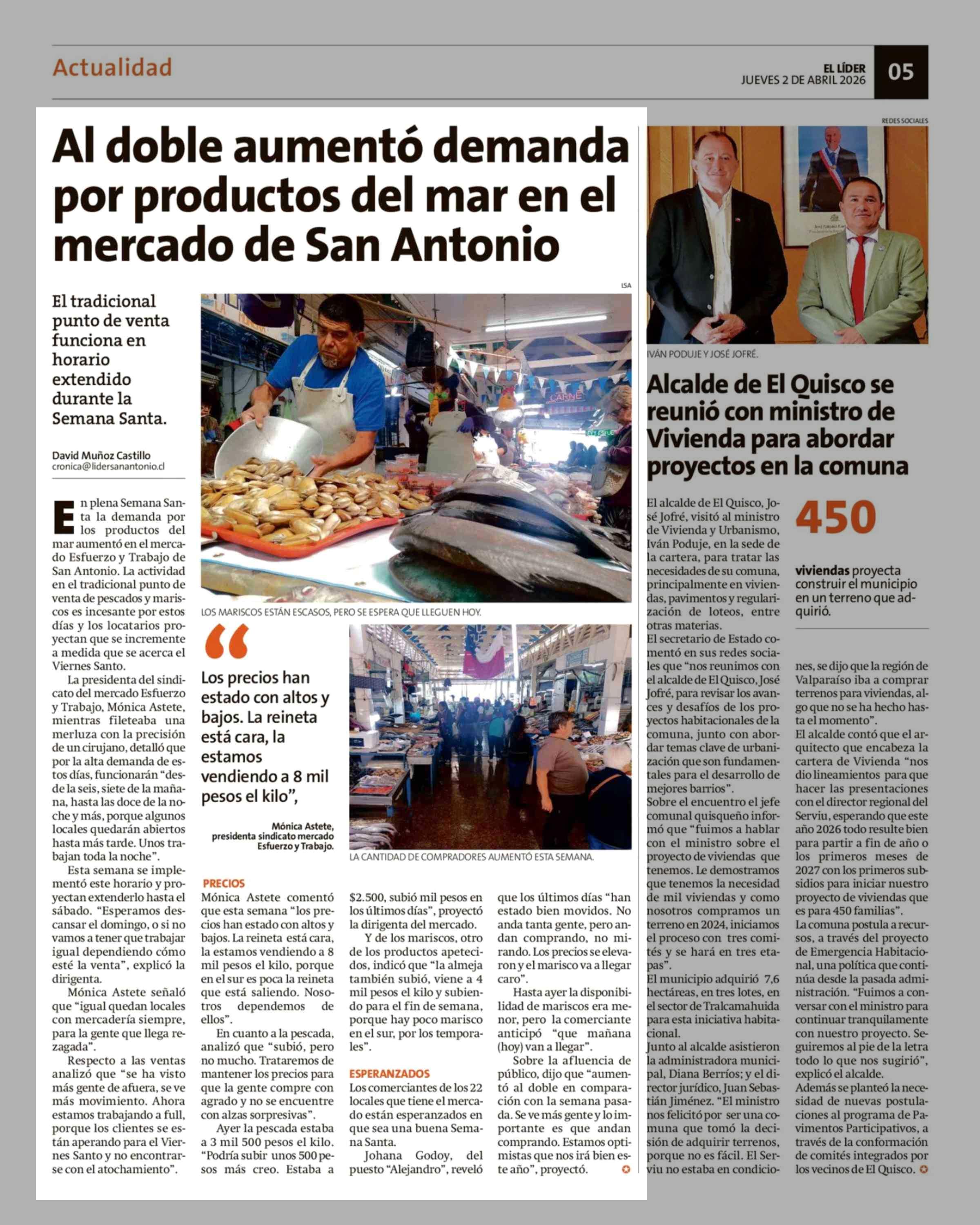 Al doble aumentó demanda por productos del mar en el mercado de San Antonio 02-04-2026 El Líder |