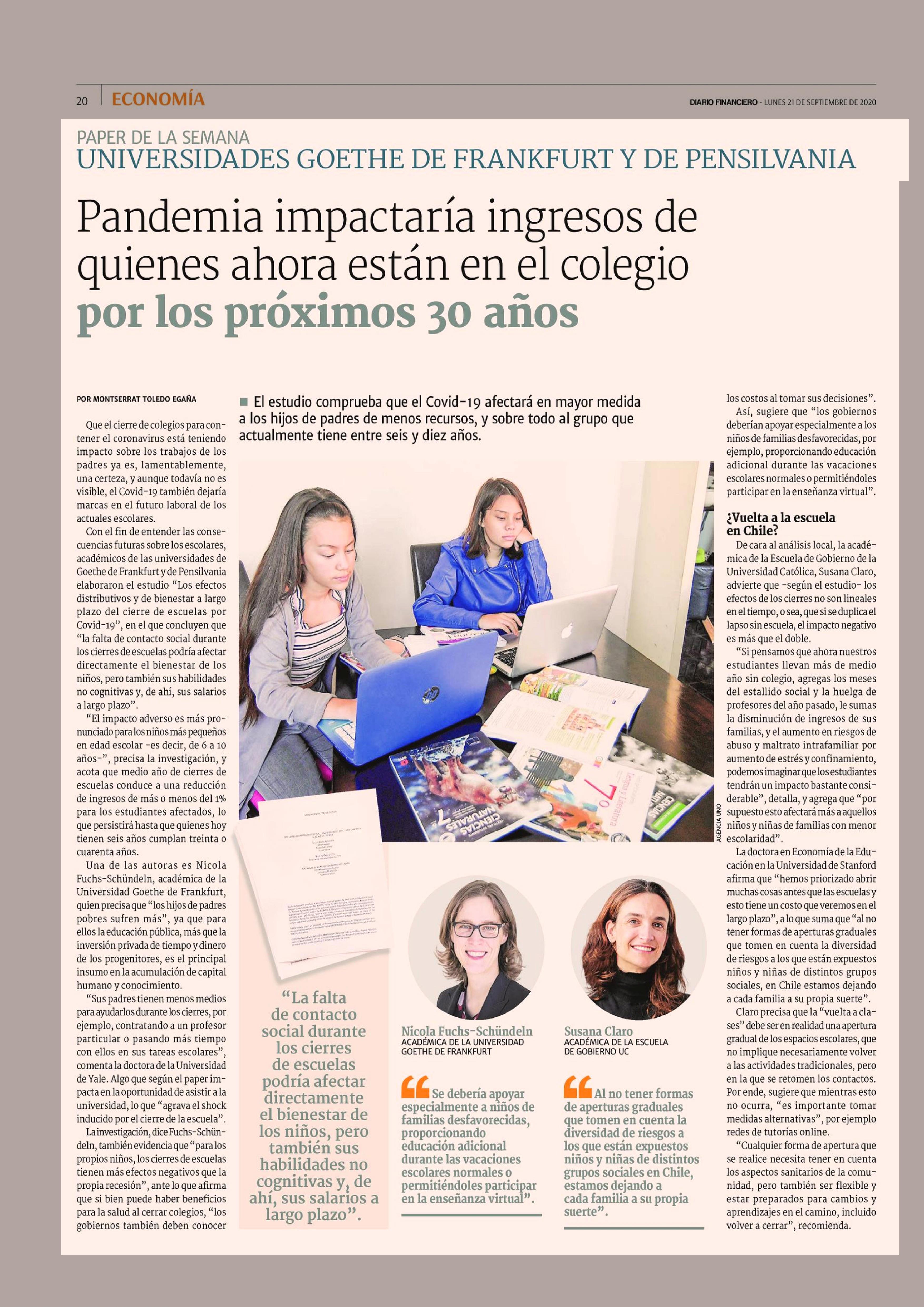 Título: Pandemia impactaría ingresos de quienes ahora están en el colegio por los próximos 30 años