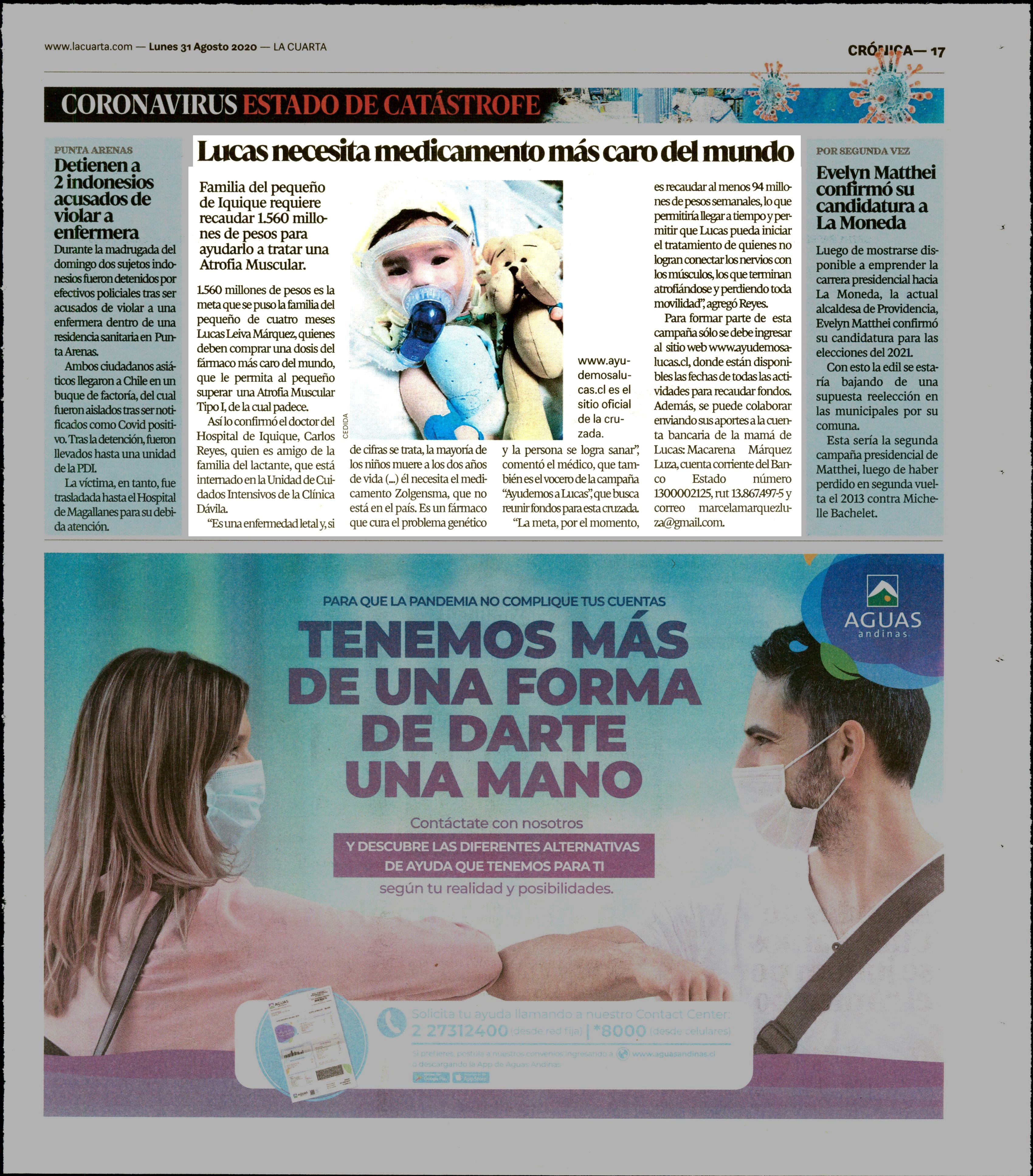 Lucas necesita medicamento más caro del mundo 31-08-2020 La Cuarta |