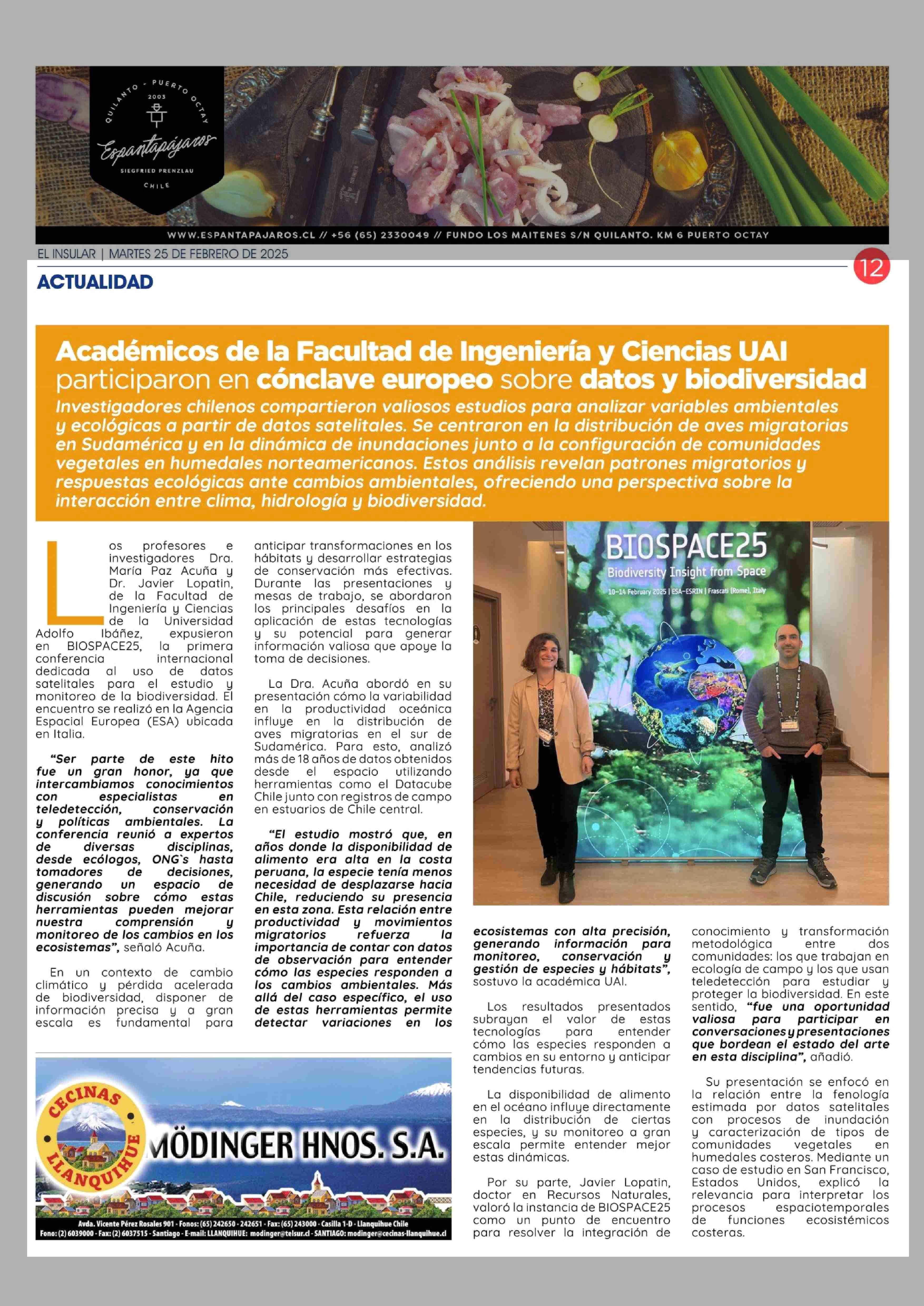 Académicos de la facultad de ingeniería y ciencais UAI participaron en cónclave europeo sobre datos y biodiversidad 25-02-2025 El Insular |