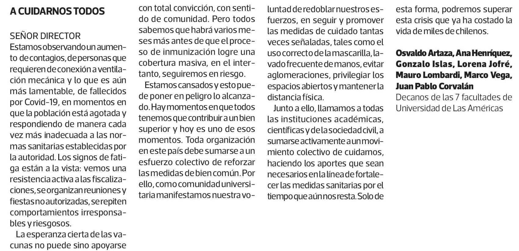 A CUIDARNOS TODOS 20-01-2021 La Tercera |