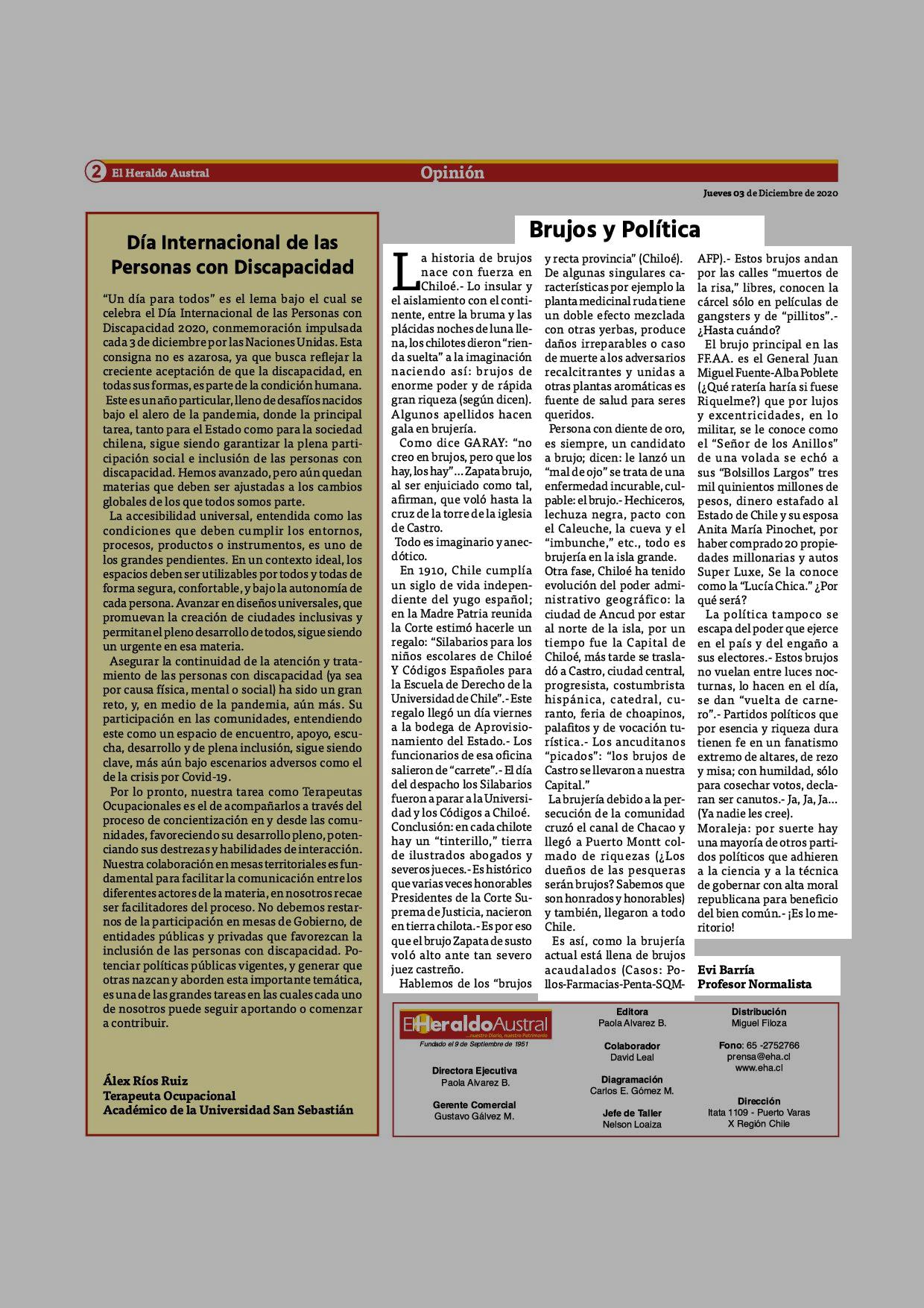 Brujos y Política 03-12-2020 El Heraldo Austral |