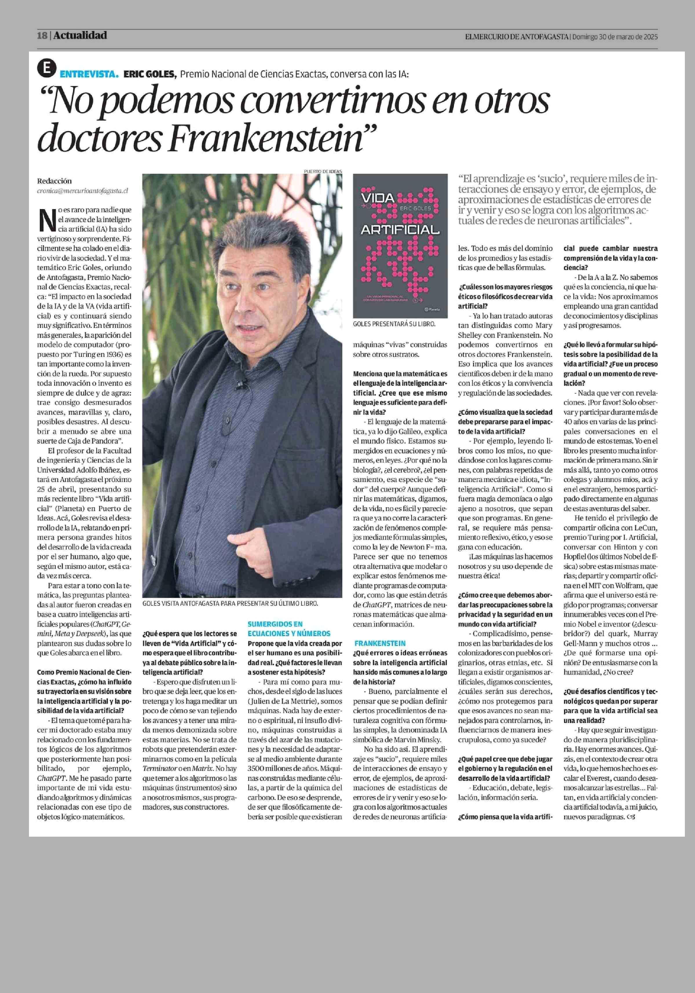 “No podemos convertirnos en otros doctores Frankenstein” 30-03-2025 El Mercurio de Antofagasta |