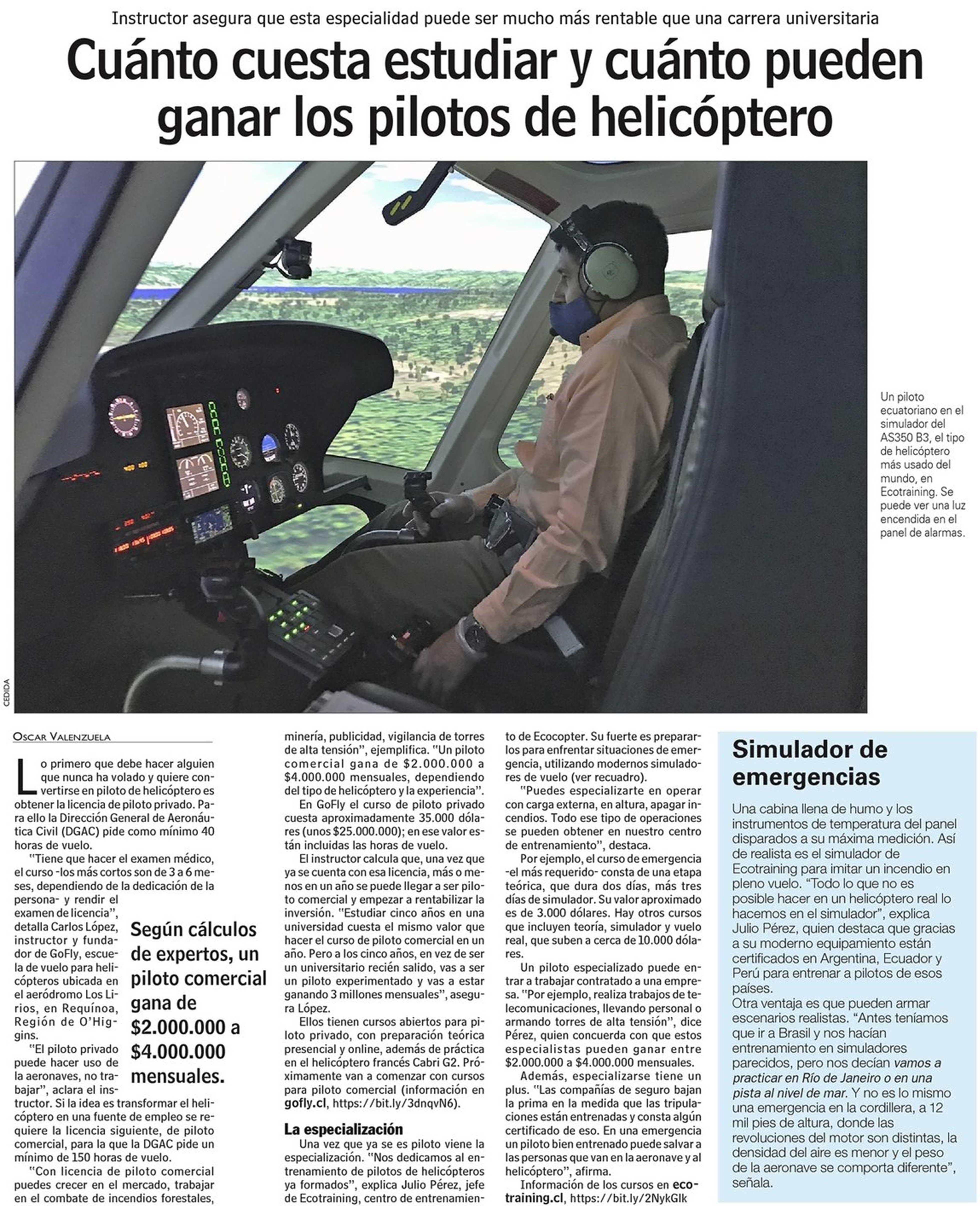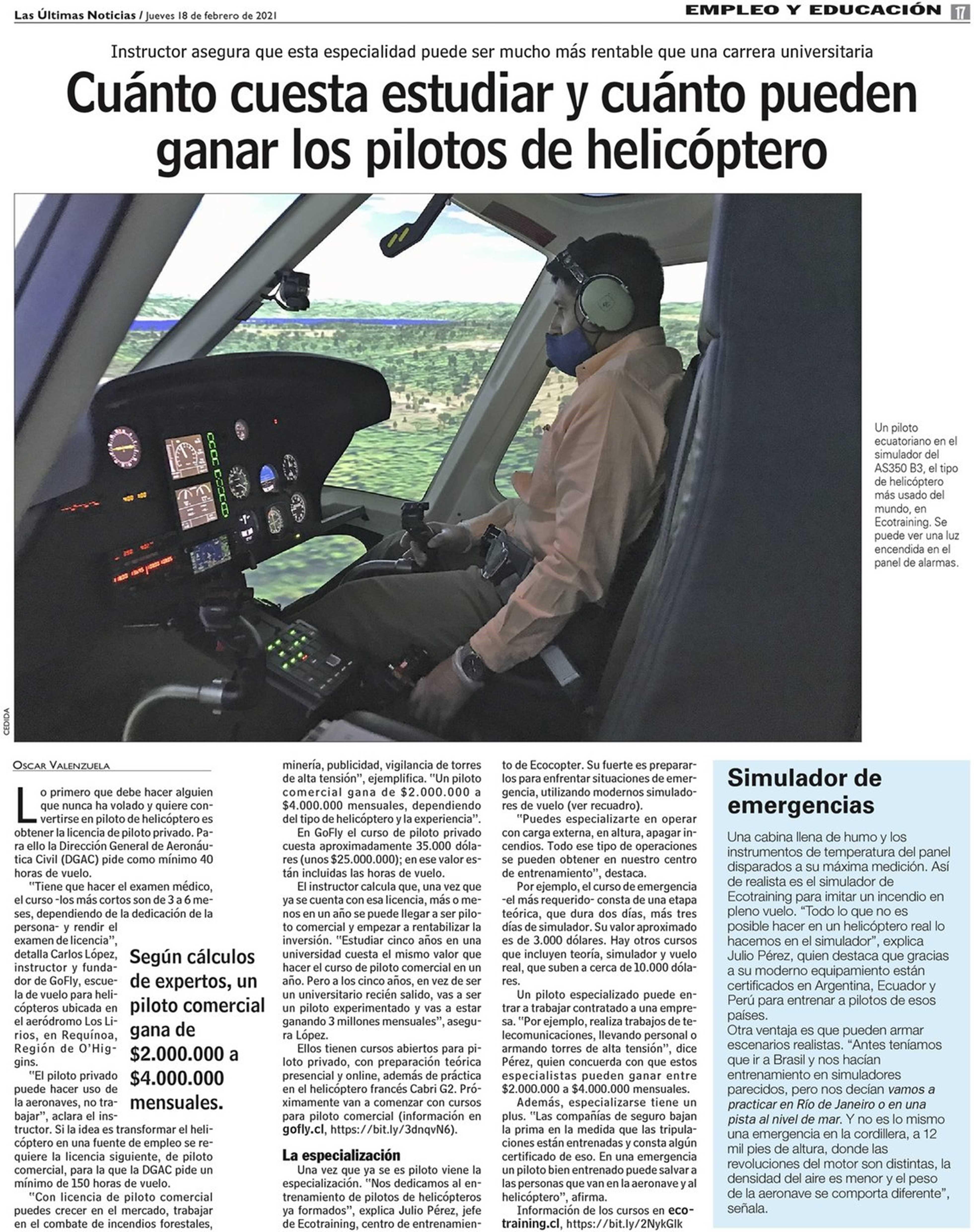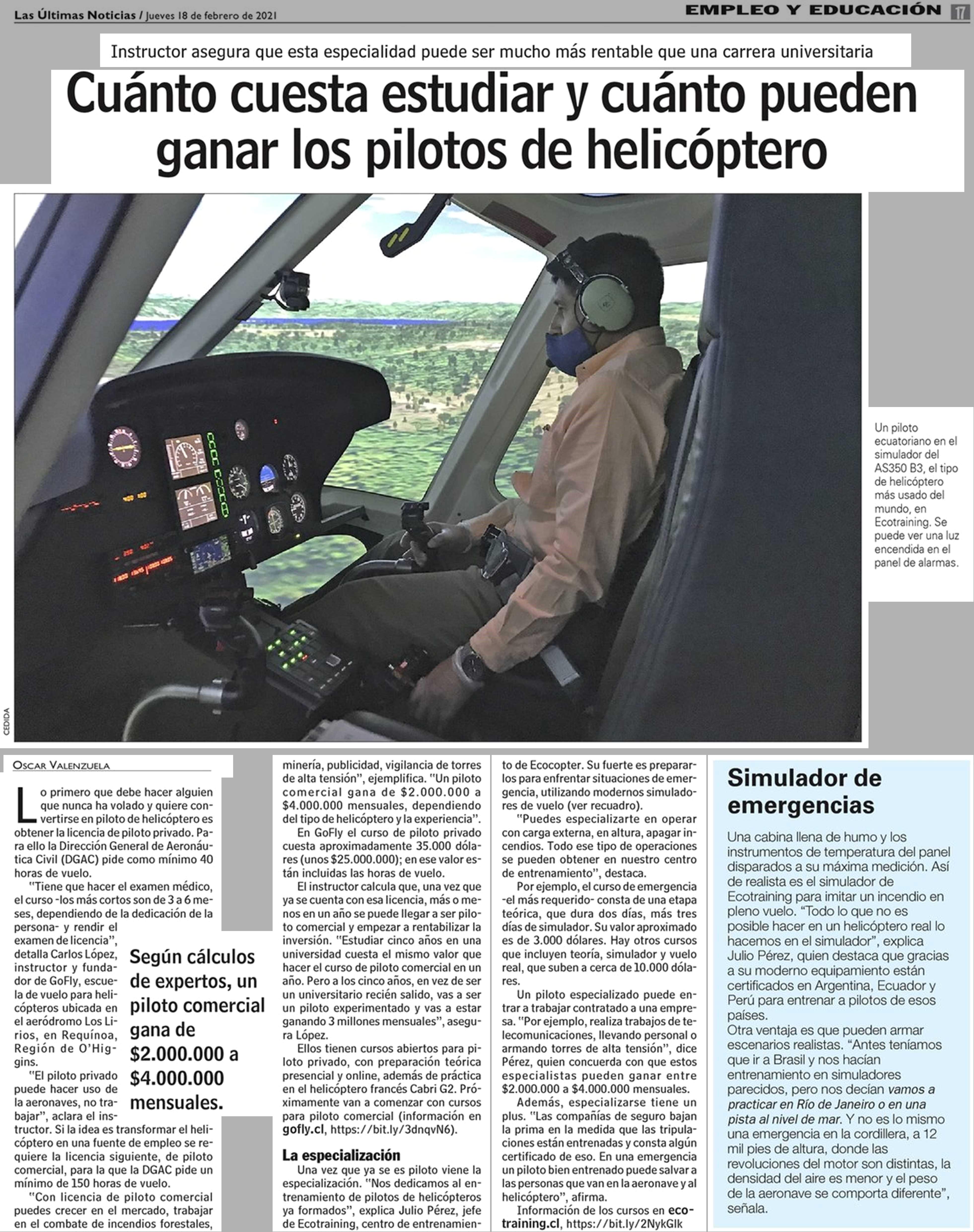 Cuánto cuesta estudiar y cuánto pueden ganar los pilotos de helicóptero 18-02-2021 Las Últimas Noticias |