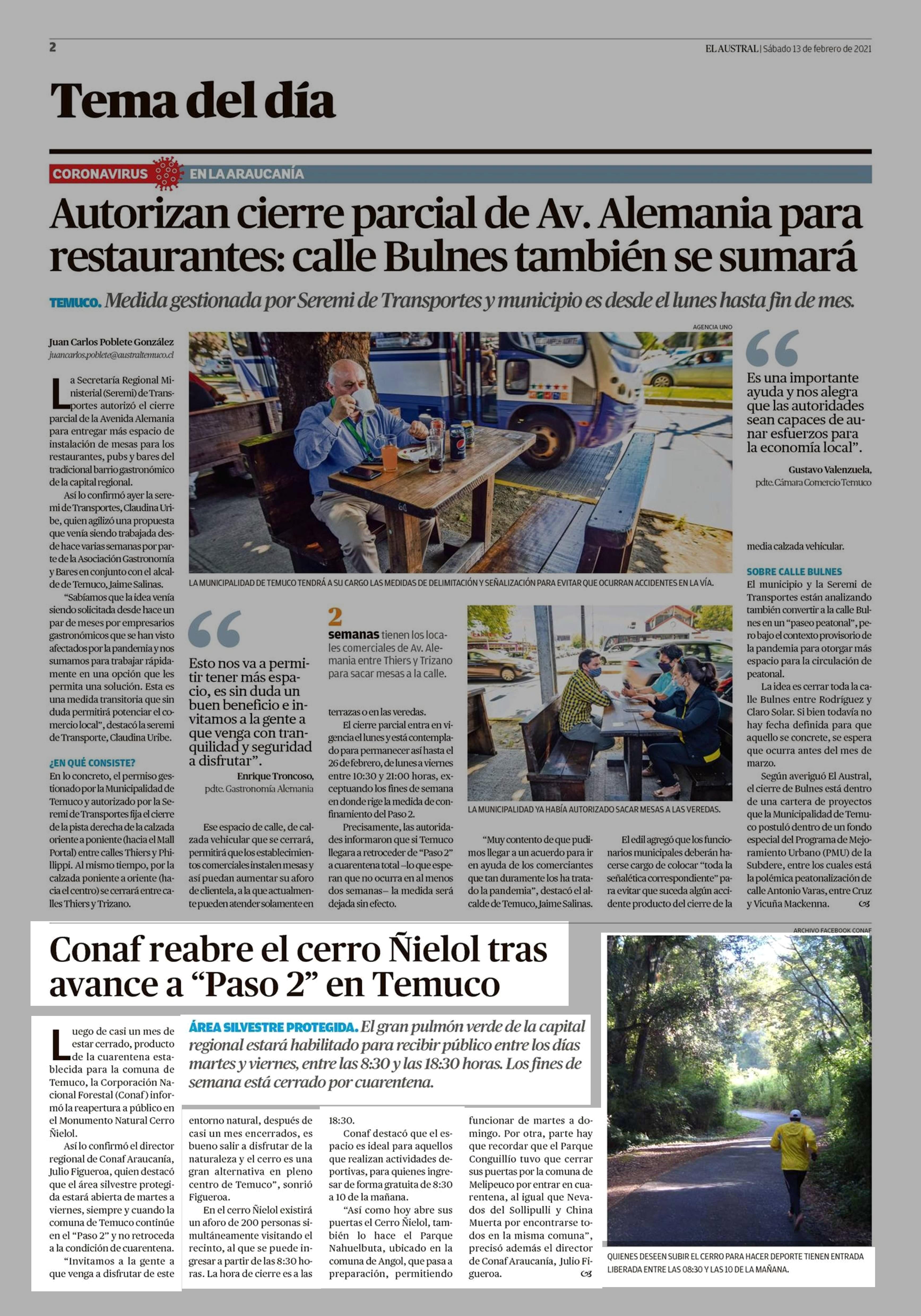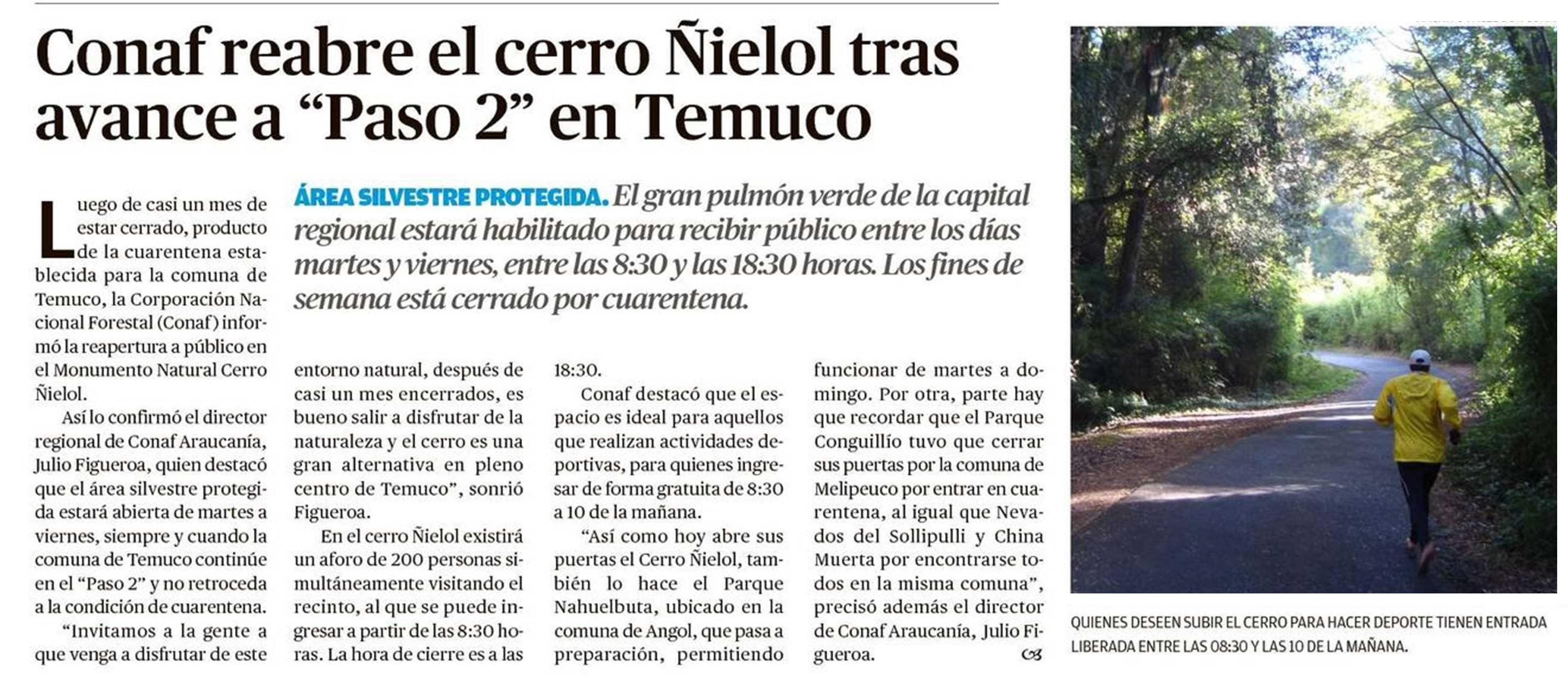 Conaf reabre el cerro Ñielol tras avance a “Paso 2” en Temuco 13-02-2021 El Austral de la Araucanía |