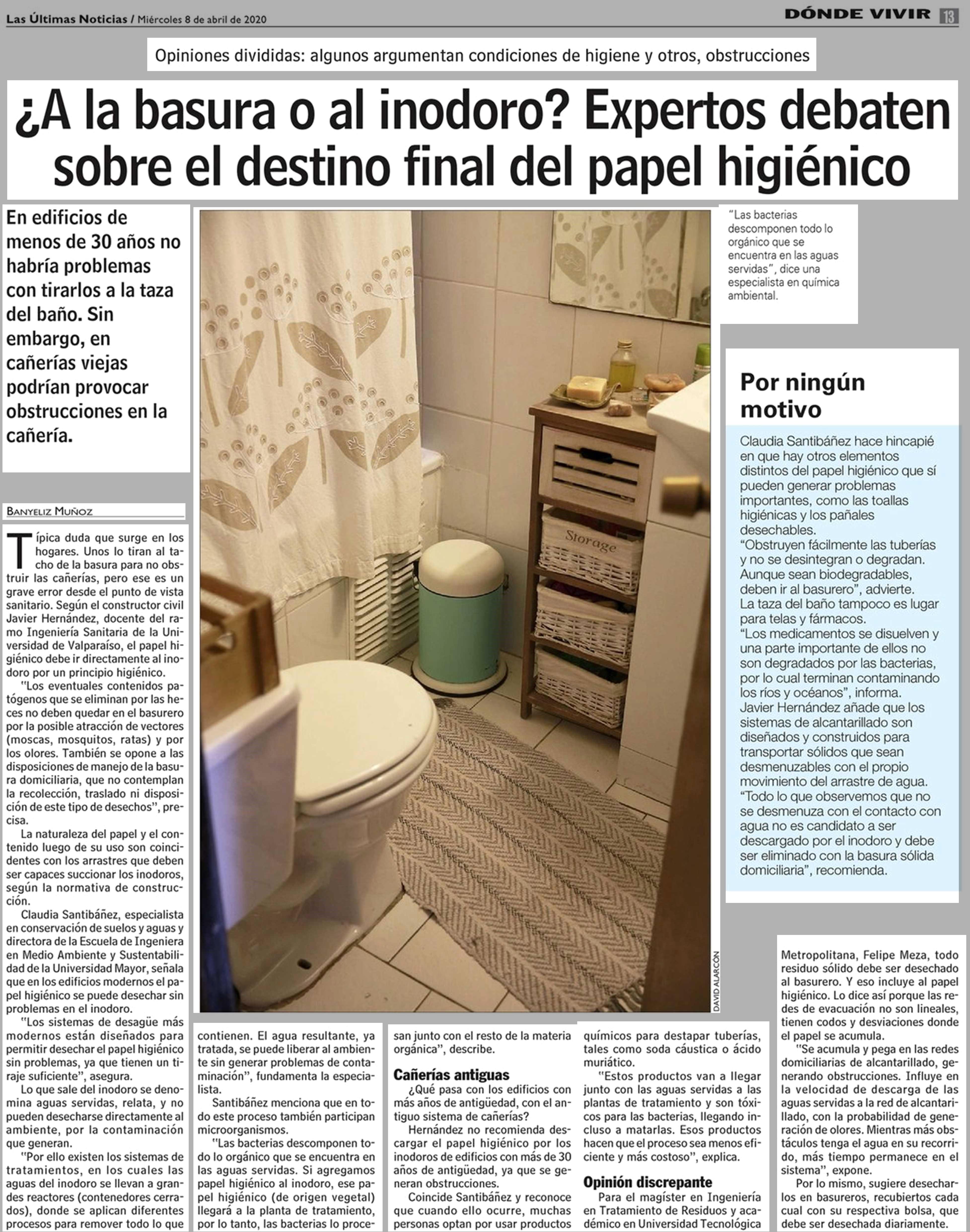 ¿ A la basura o al inodoro? Expertos debaten sobre el destino final del papel higiénico 08-04-2020 Las Últimas Noticias |