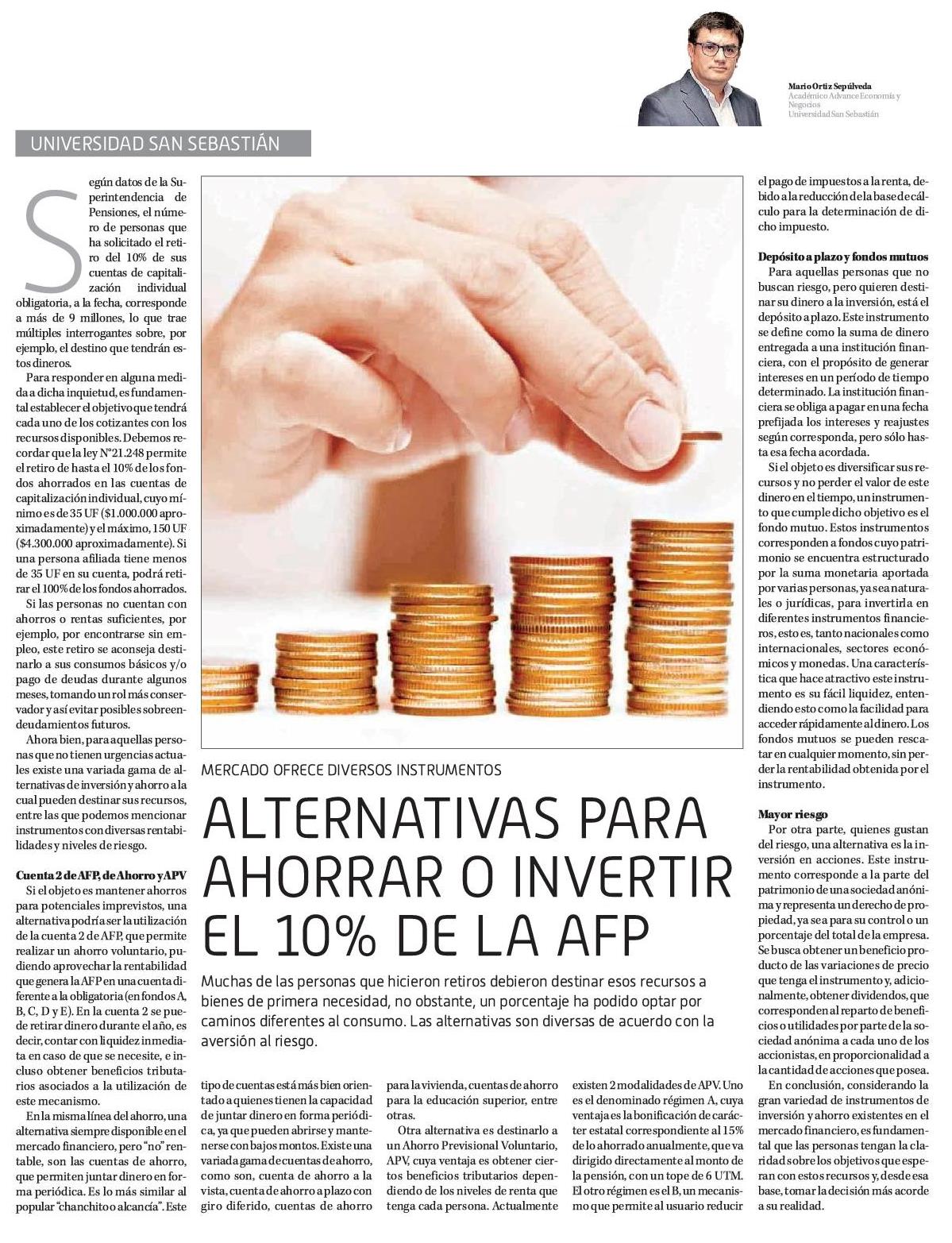 Título: ALTERNATIVAS PARA AHORRAR O INVERTIR EL 10% AFP